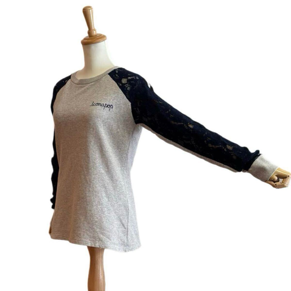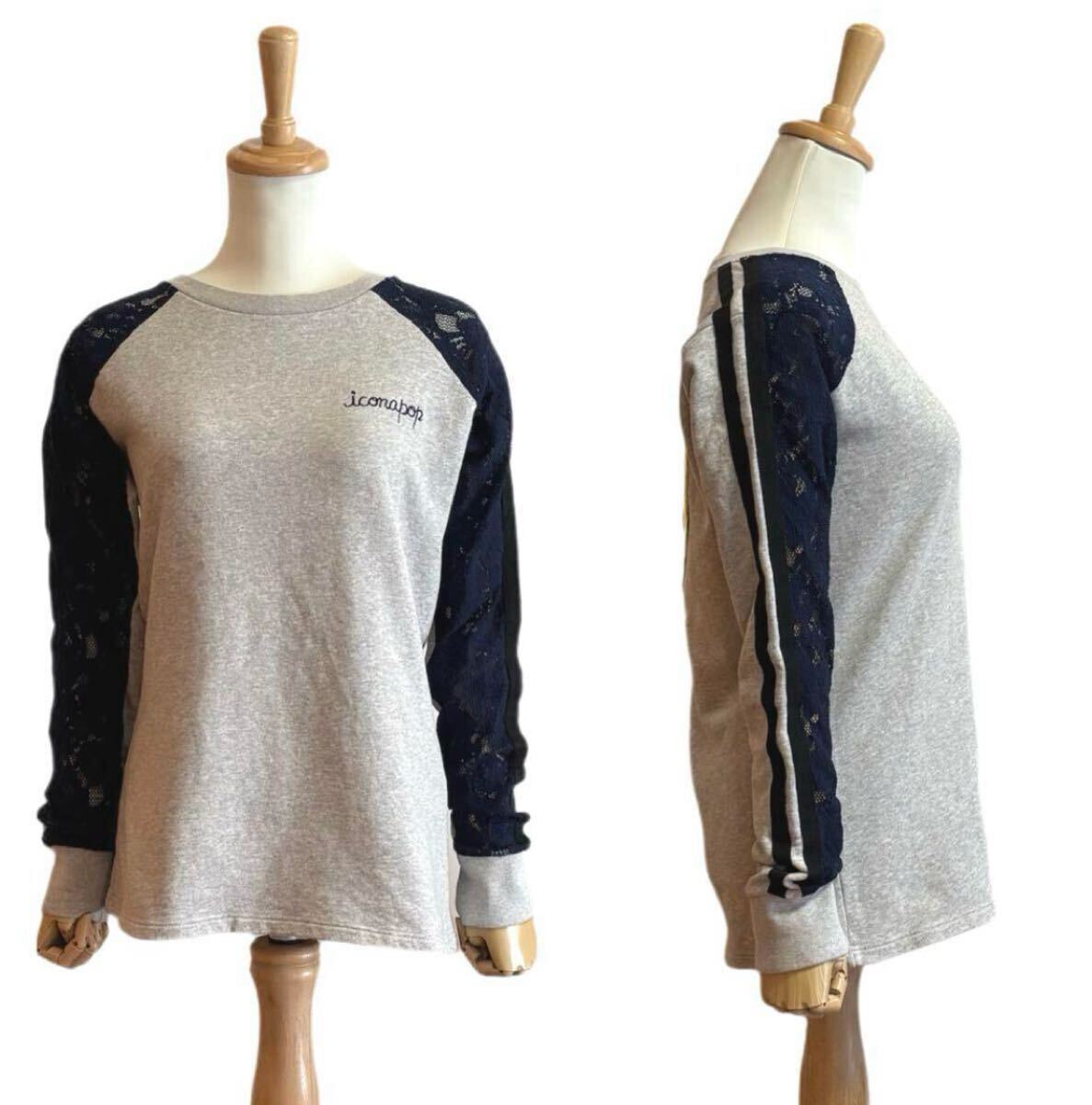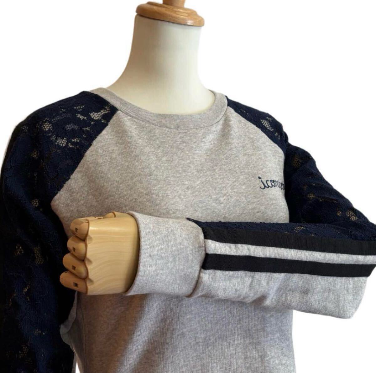 遊び心あふれるデザインが魅力のリメイク風プルオーバースウェットです。背中に大きなスマイルワッペン、袖部分に施されたレースがフェミニンな要素をプラスし、カジュアルながらもエレガントな印象です。