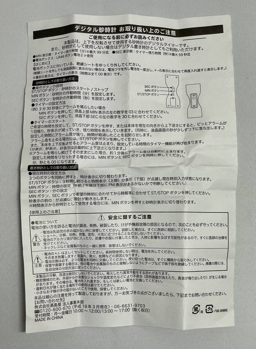 【未使用品】★デジタル砂時計/キッチンタイマー★