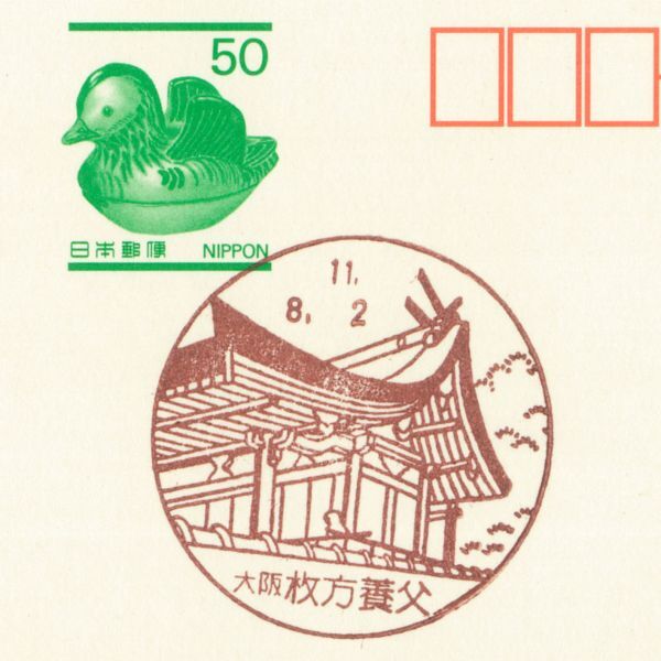 風景印☆初日☆大阪・枚方養父・H11.8.2