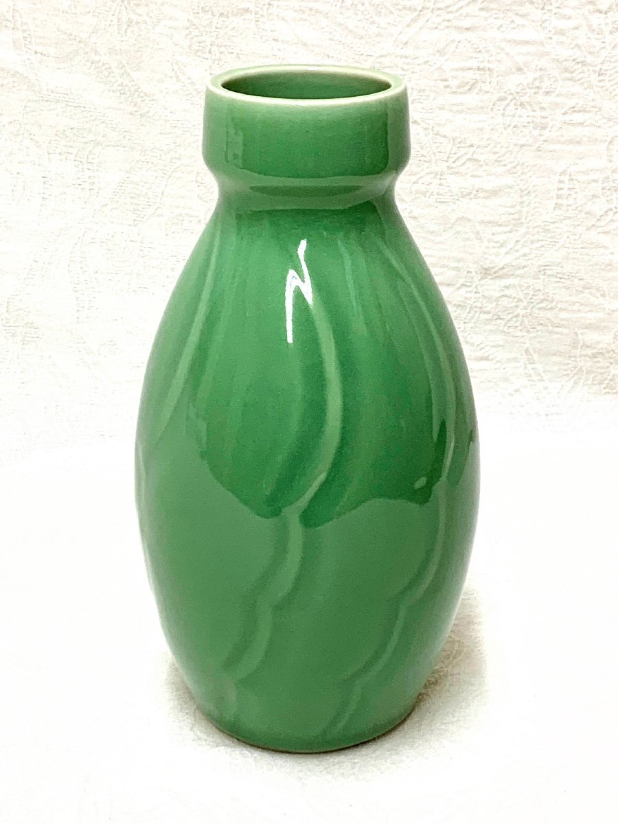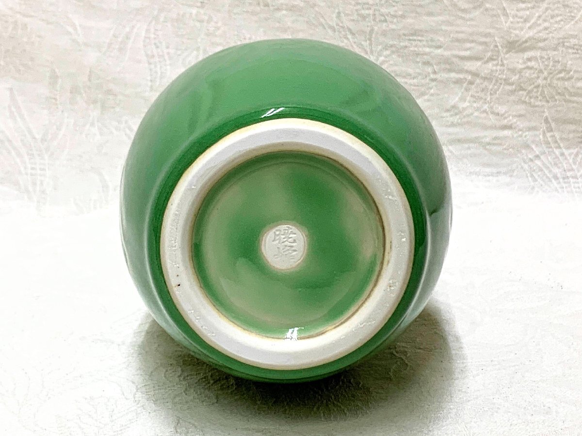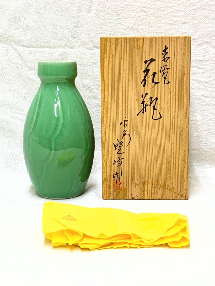 16453/青磁 花瓶 平安 暁峰作 未使用 共布共箱 花器 花生 フラワーベース 華道具