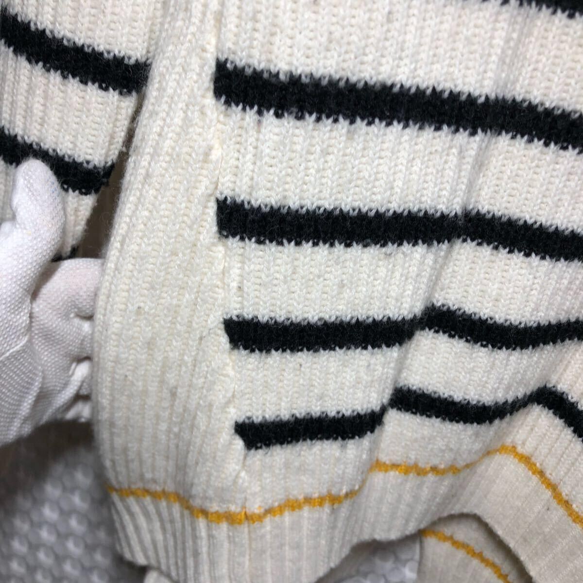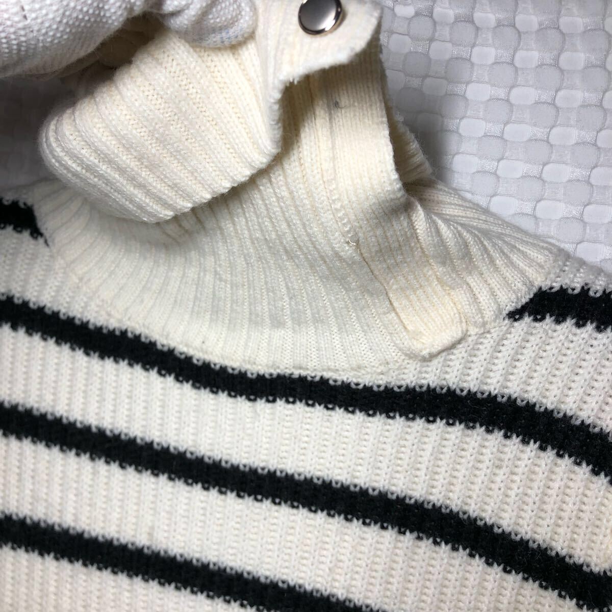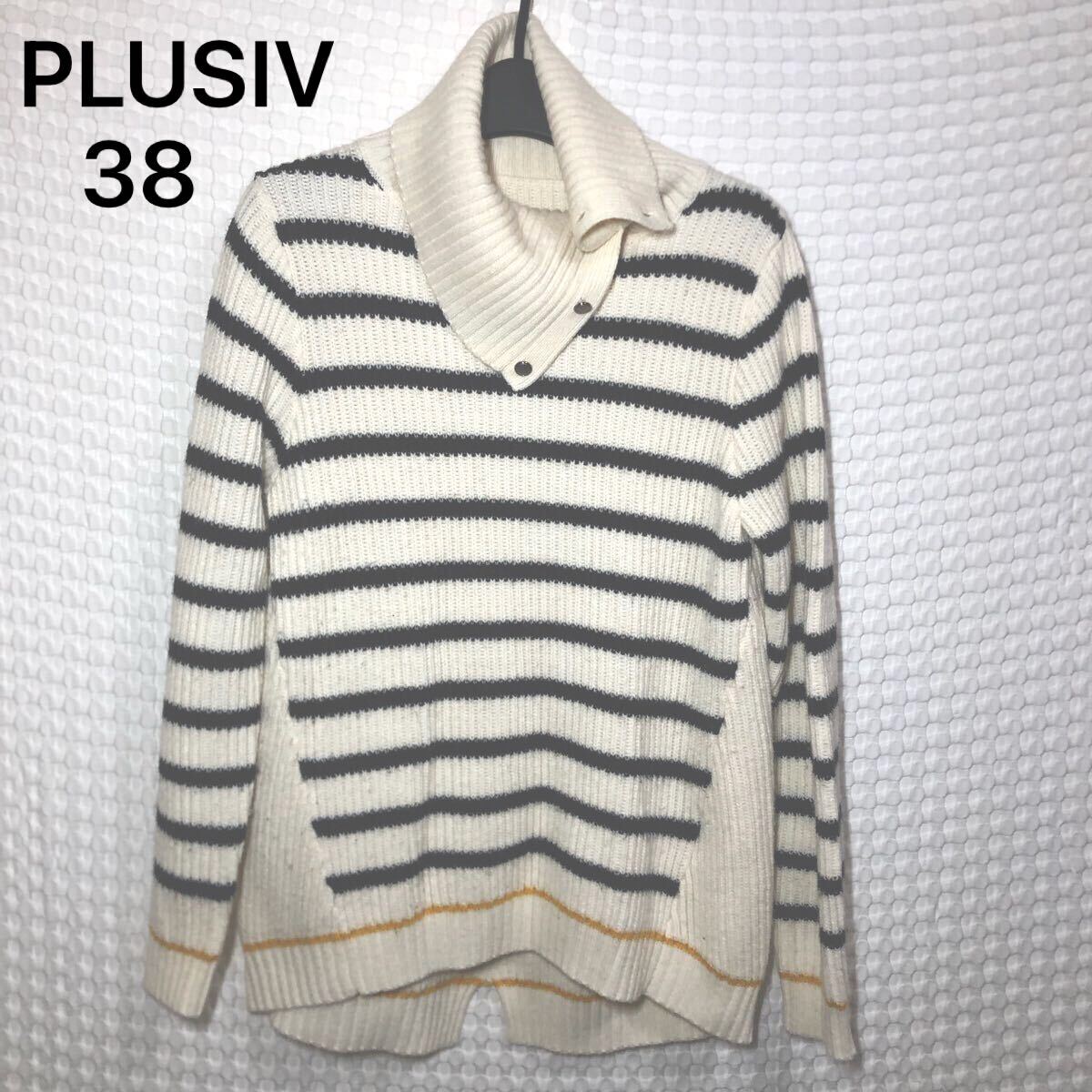 PLUSIV プラッシヴ ニット セーター 長袖 トップス ボーダー 白 古着