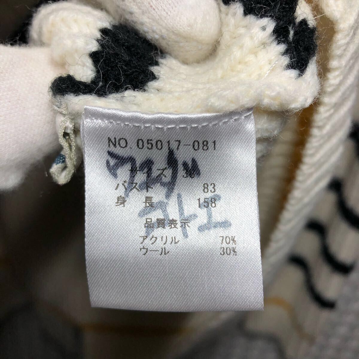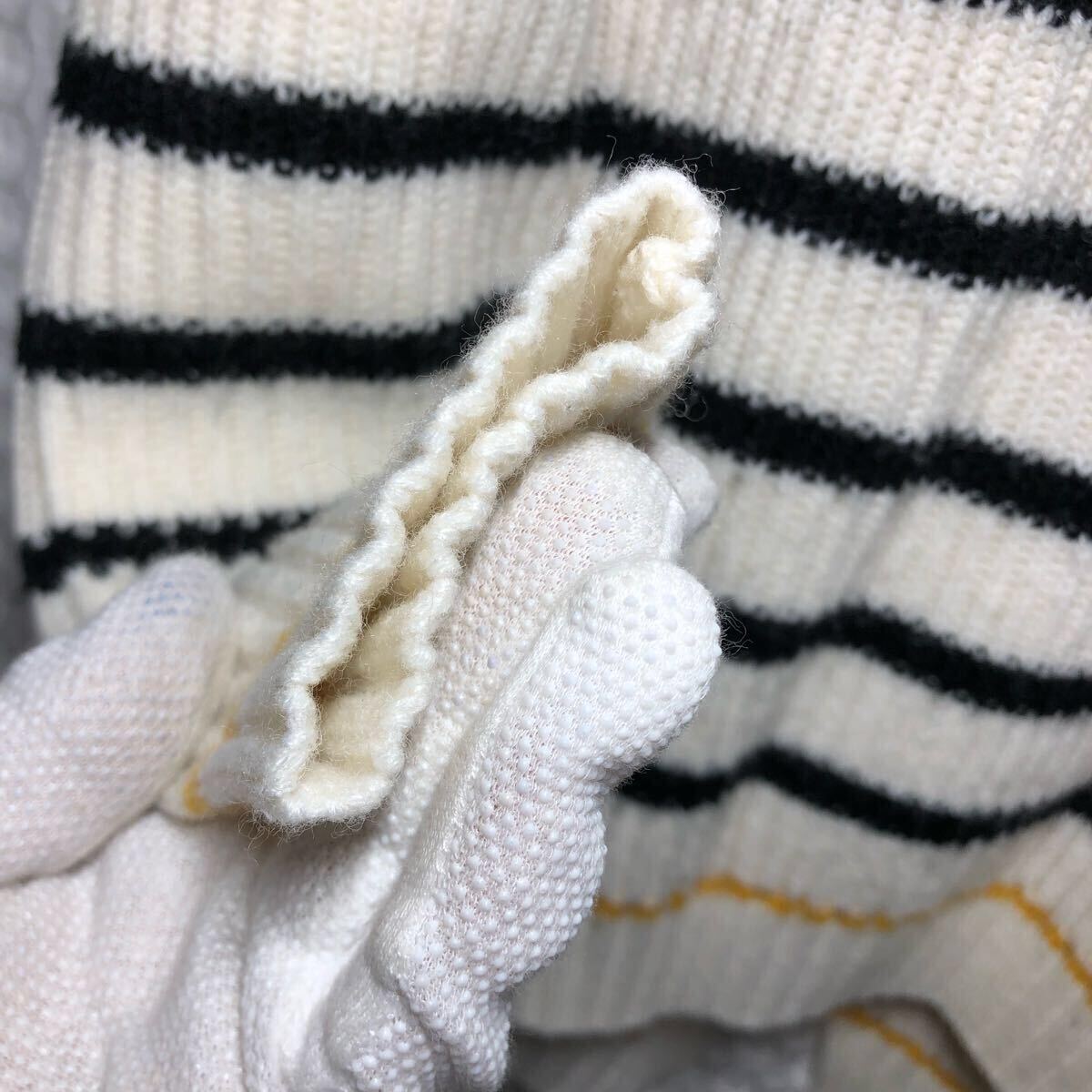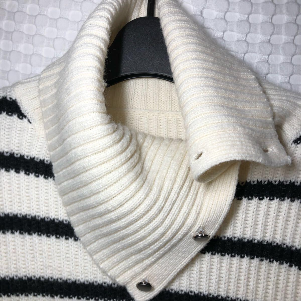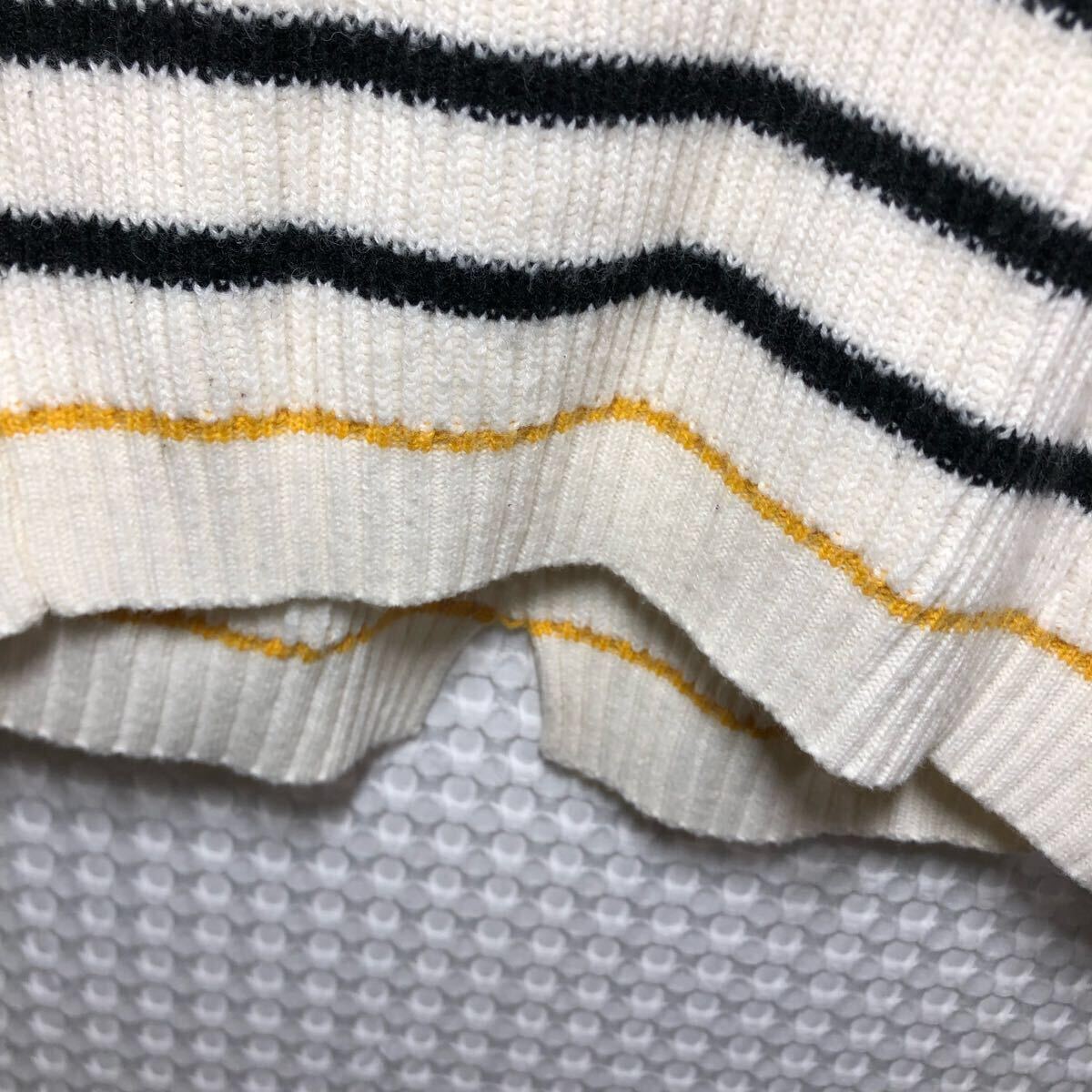 PLUSIV プラッシヴ ニット セーター 長袖 トップス ボーダー 白 古着