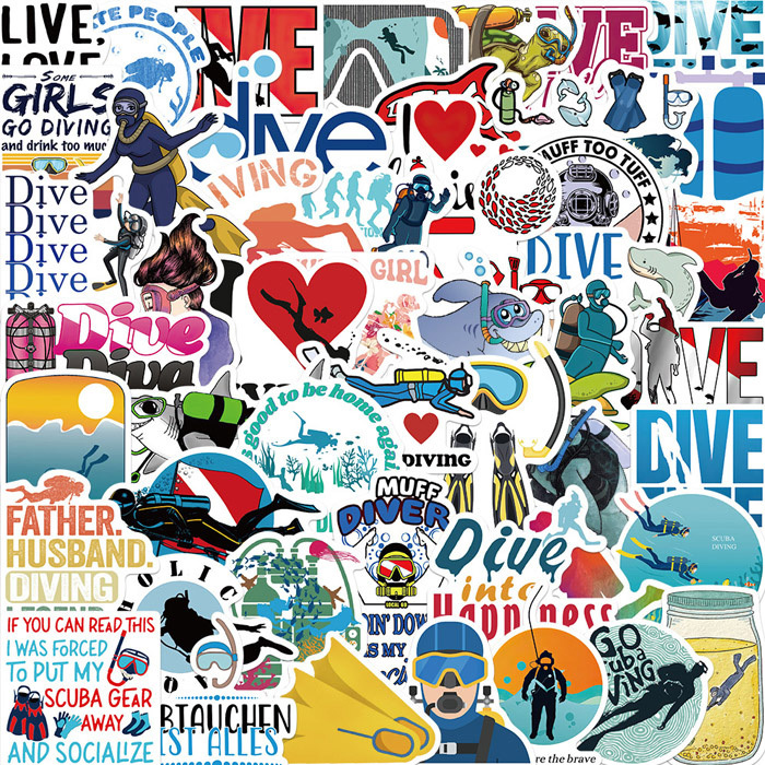 50枚 ステッカー ダイビング 防水 耐水 シール 詰め合わせ 0892