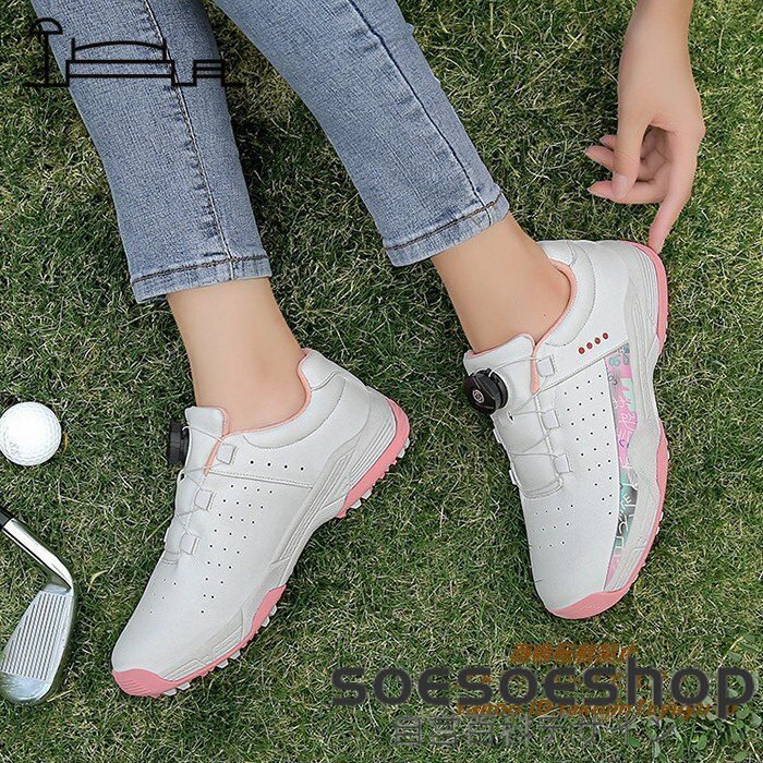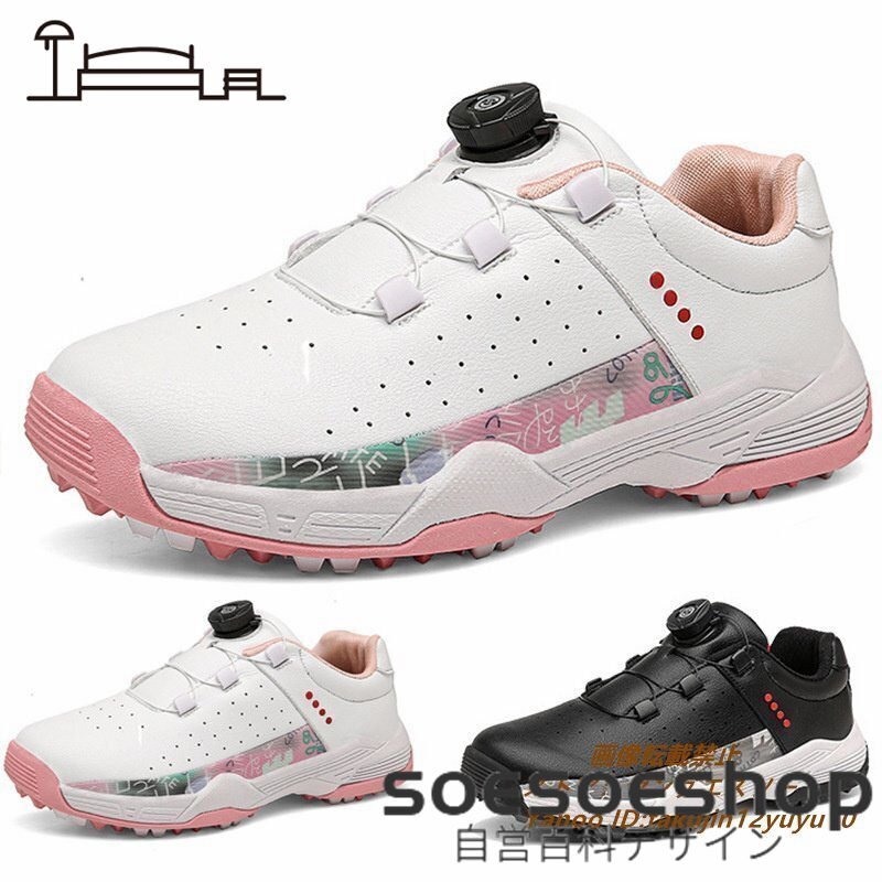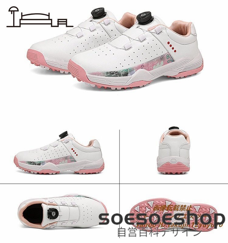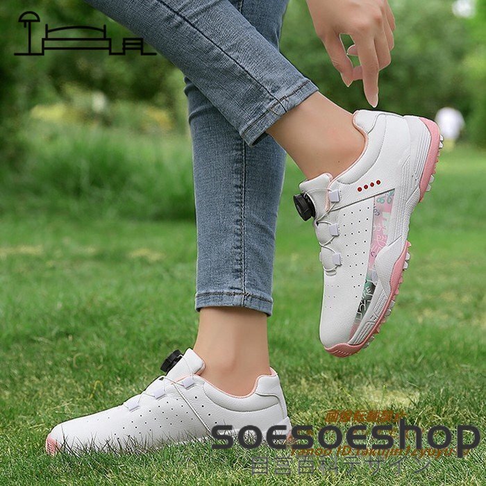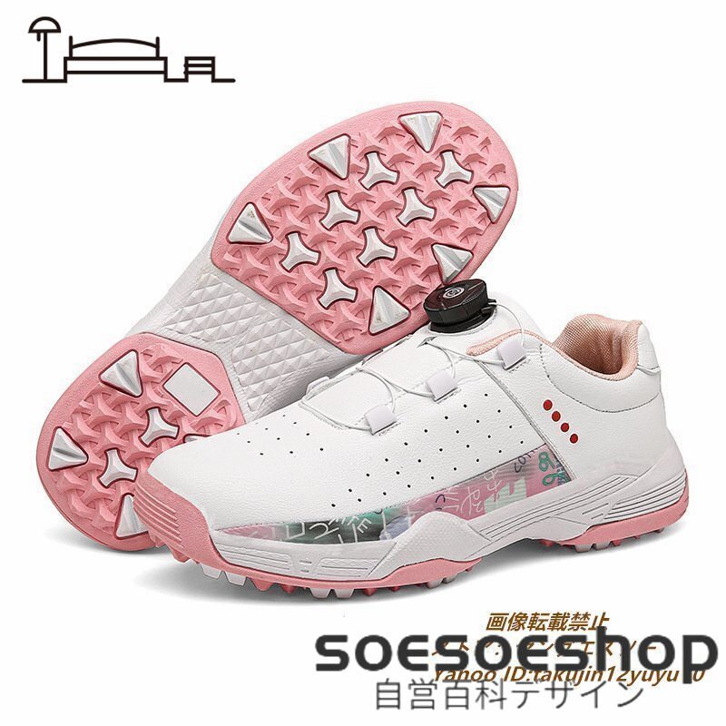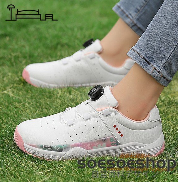 超美品★レディース ゴルフシューズ ダイヤル式 スポーツシューズ 切替 幅広 運動靴 新品 スニーカー フィット感 防滑 耐磨 撥水 白 23.0cm