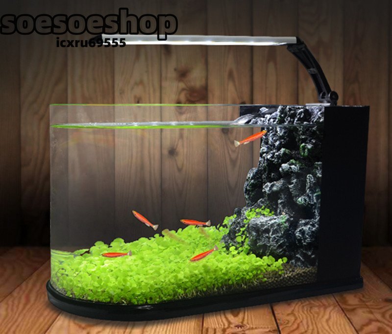 観賞魚飼育 小型水槽 ルームグラス ミニ水槽 ガラス水槽 ガラス 小型ガラス容器 水族館 LED照明 観賞魚用 アクアリウム 築山 静音 省エネ