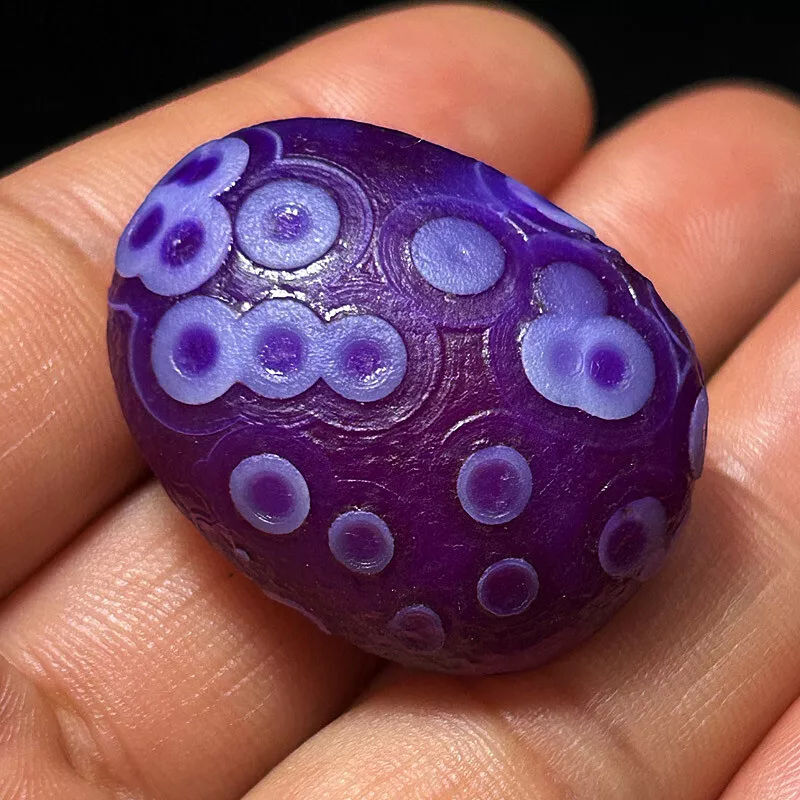 ゴビ砂漠、丘陵、湖沼で数億年(中生代ベルム紀〜三畳紀)の歳月をかけて結晶風化形成されたと伝わる アラシャンアゲート(ゴビ瑪瑙)。その中でもここまでフルーツ飴色の天眼や「ミステリーサークル」「魔法陣」が現れた美しい模様を持つゴビ瑪瑙は、とてつもない金額で取引きされ大変入手困難となっています。