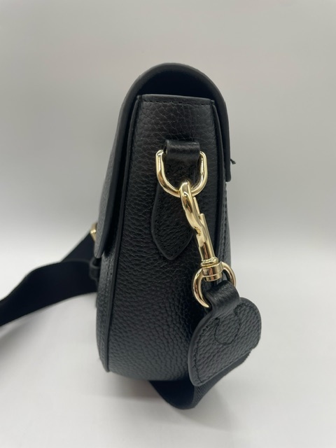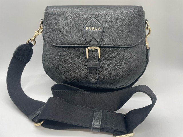 K5909◆ 【美品】 FURLA フルラ ウラニア レザー ショルダーバッグ フラップ 斜め掛け 肩掛け ブラック 黒系 ゴールド金具 かばん 鞄