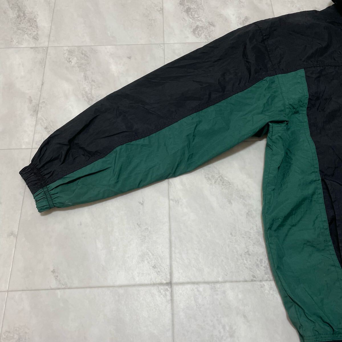 90s NIKE ナイキ ナイロンジャケット ジップジャンパー 銀タグ ヴィンテージ ビッグプリント グリーン ブラック キッズ サイズM 玉SS3124