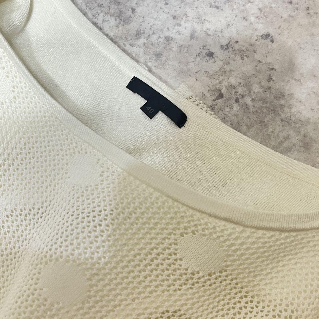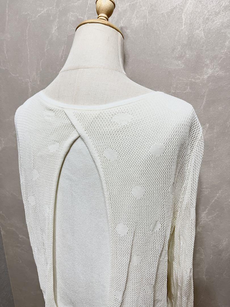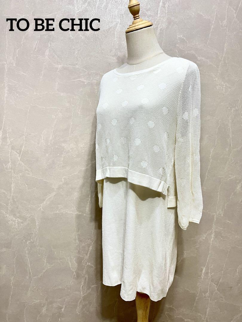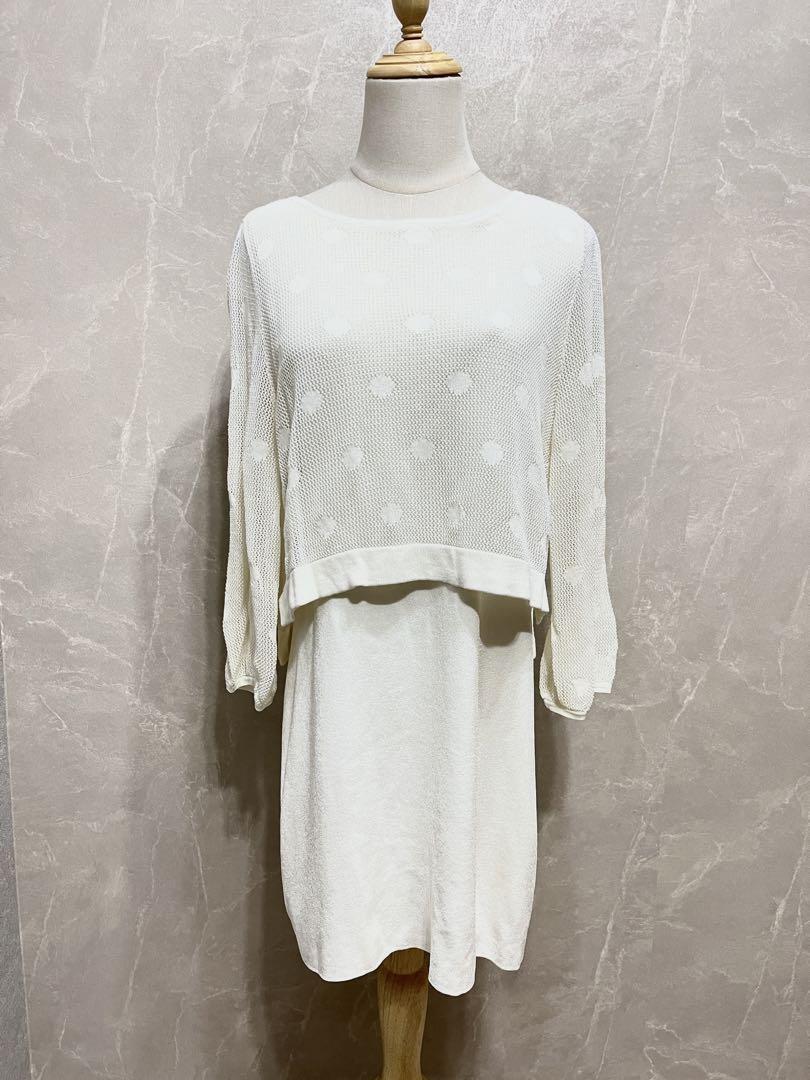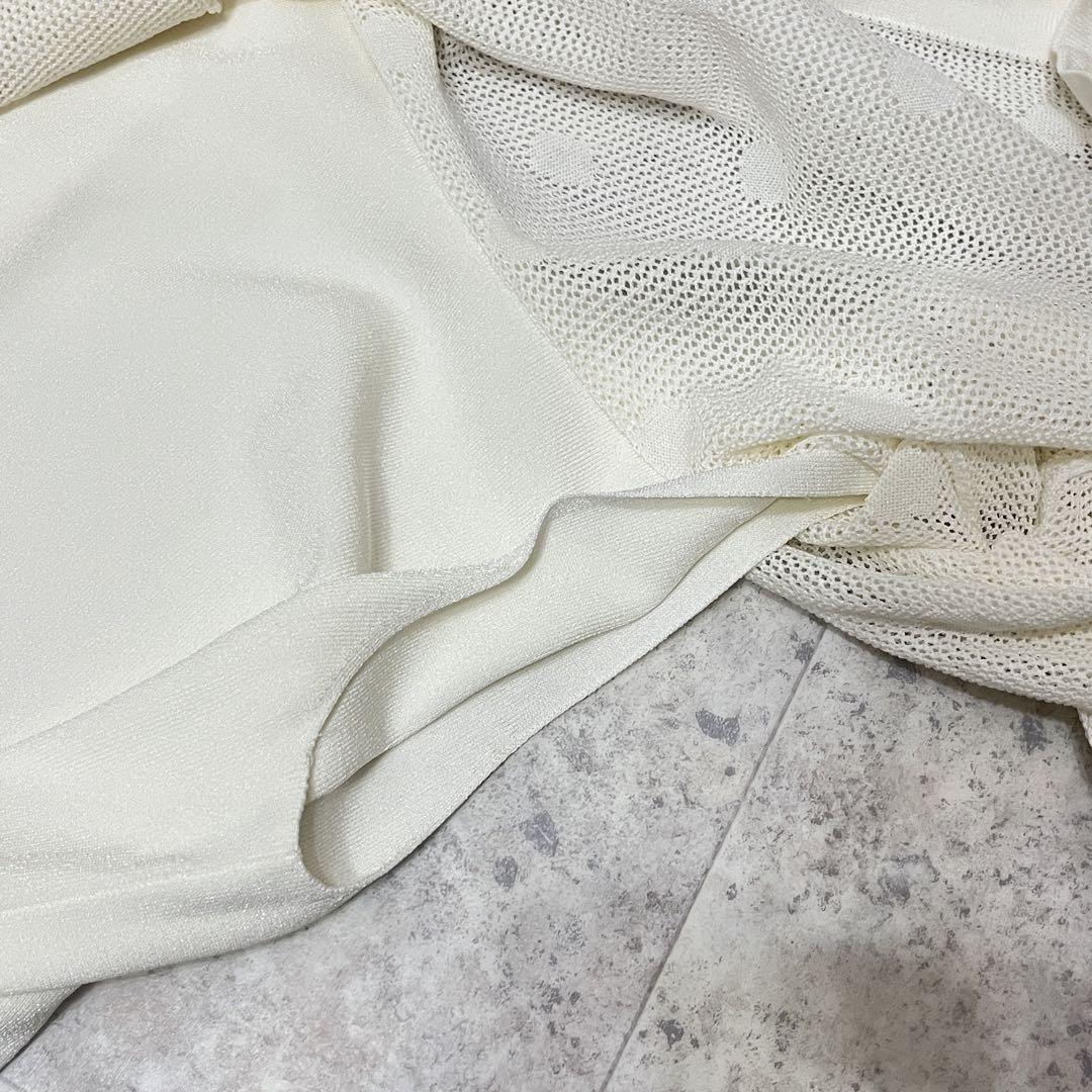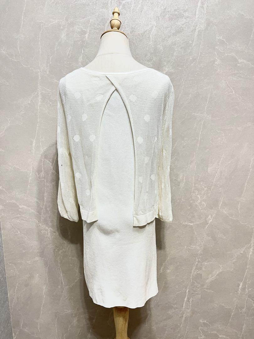 重ね着したようなメッシュ部分で二重になっているおしゃれなニットワンピースです。