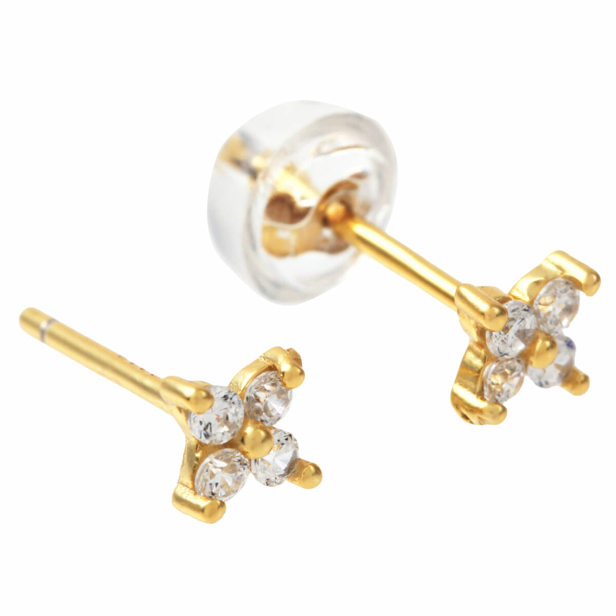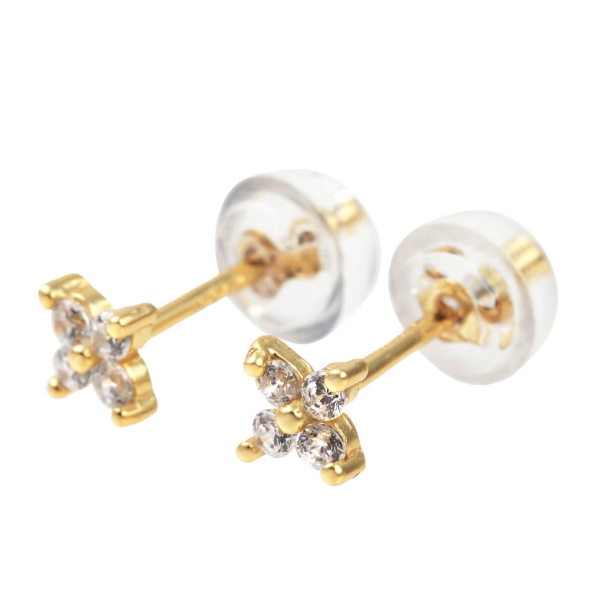 ピアス SILVER925 ゴールド プチ ダイヤモンド クローバー 落ちない シリコンキャッチ レディース