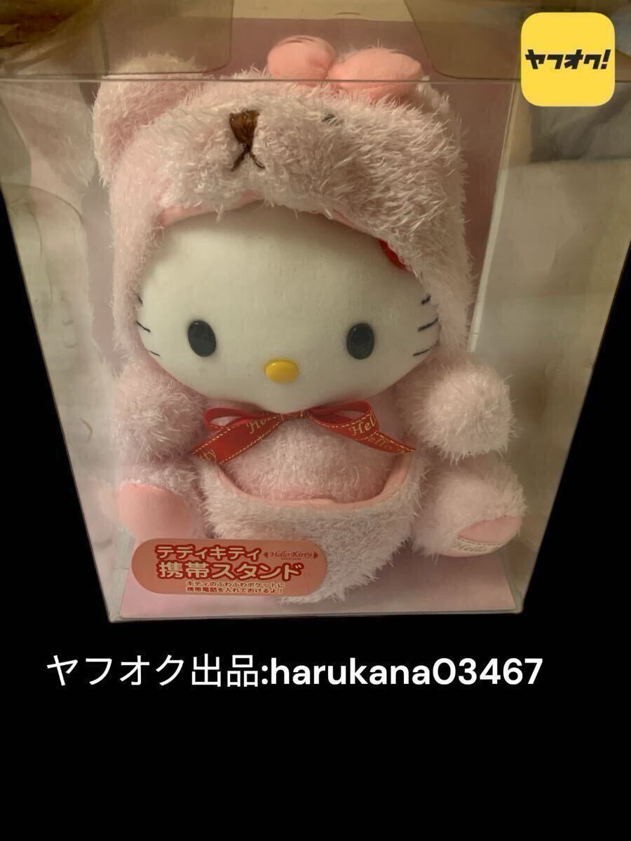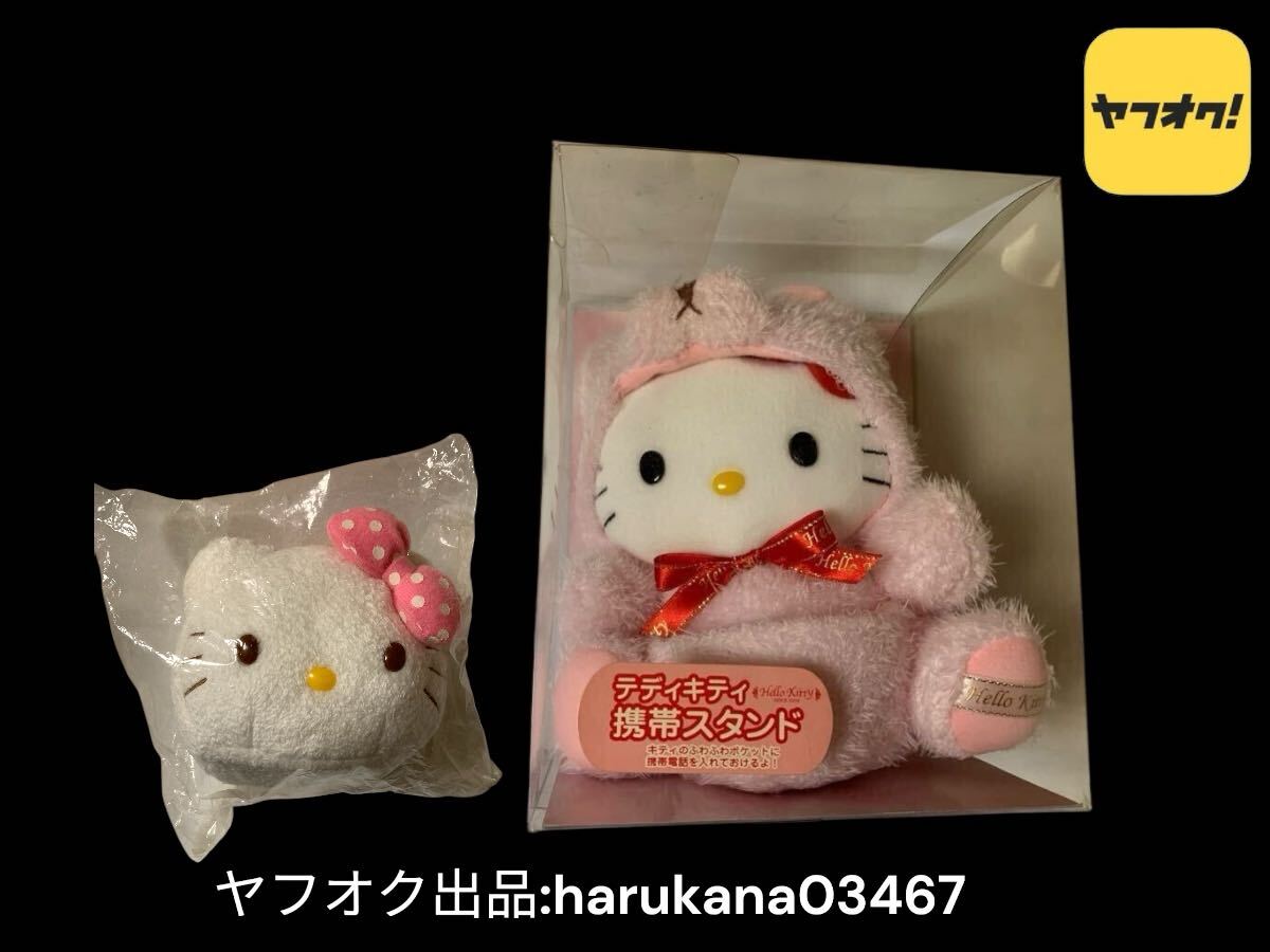 当時物 レトロ Hello Kitty ハローキティ テディベア 携帯スタンド ぬいぐるみ/マスコット ピンクリボン サンリオ 2002 2010年 KT