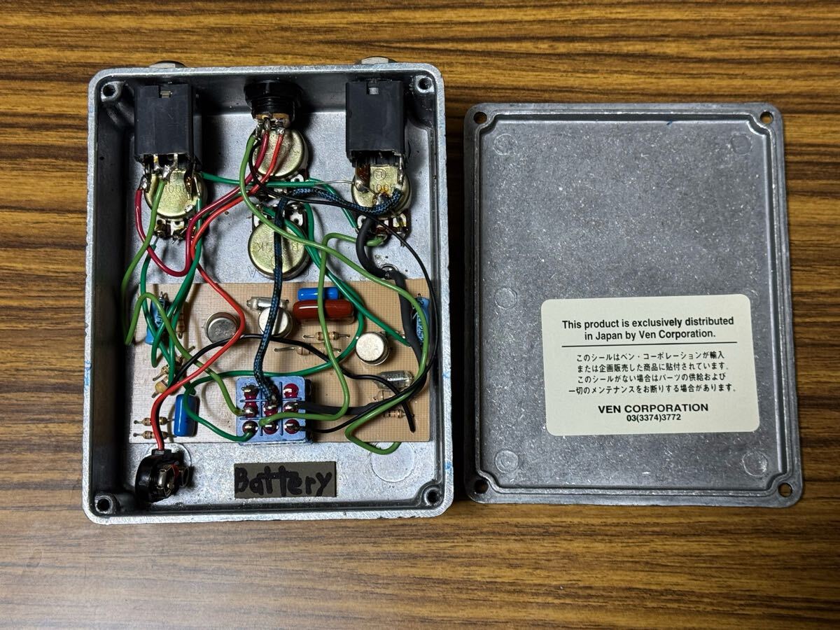 ※当初はACアダプタ用ジャックの追加を依頼しましたが、F・sugar店主佐藤さんのお話では、基盤と配線の仕様上、ACアダプタを使うと破損する恐れがあるので、9V電池のみ使うよう注意喚起がありました。