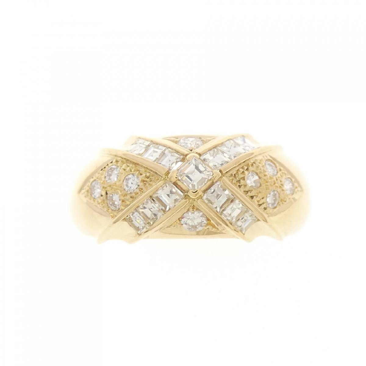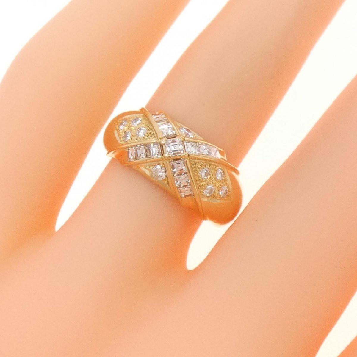 眩く輝くダイヤモンドがあしらわれたリング。イエローゴールドの輝きと共に指元を明るく飾ります。