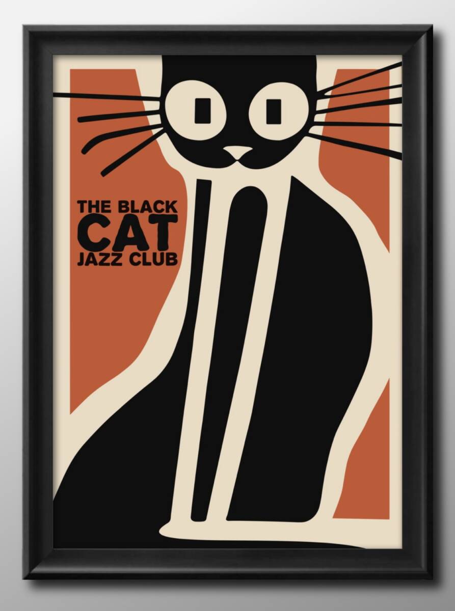 15359■送料無料!!アートポスター 絵画 A3サイズ『ジャズ ブラックキャット 猫 ネコ』イラスト 北欧 マット紙