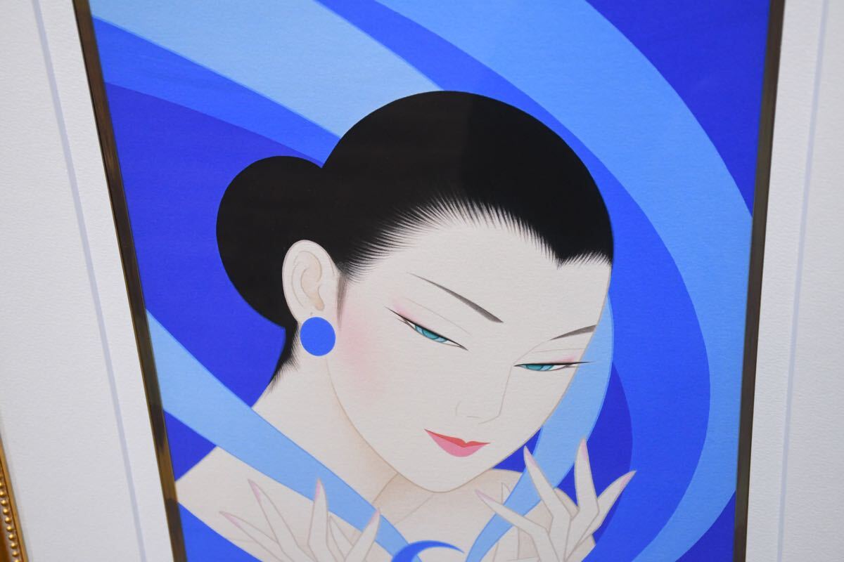 1987年5月から1998年5月まで続いたノエビアのCM「コスメティックルネッサンス」シリーズで起用されたことで有名となりました。。近年は美人画のみならず、現代の鶴田流琳派をテーマに「雪」「月」「花」や「海を渡る」、仏画などの大作にも挑んでいます。