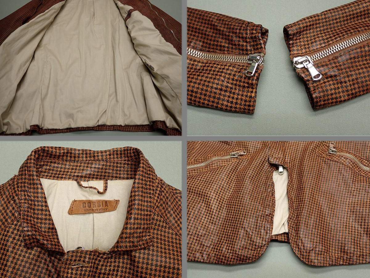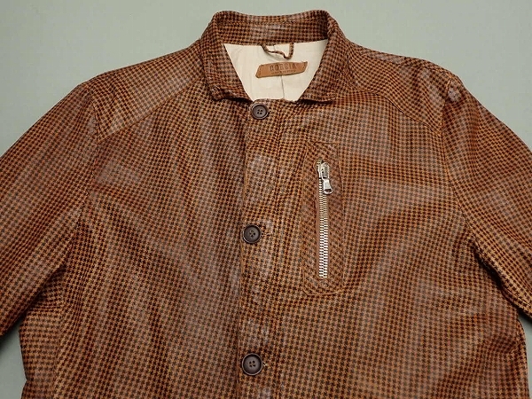 | CORSIA コルシアのレザージャケットです。イタリア製、染め&プリントレザーでとても雰囲気があります。素敵にお使い頂けると思います。気になる方は是非ご検討下さい。 | |