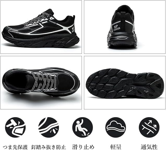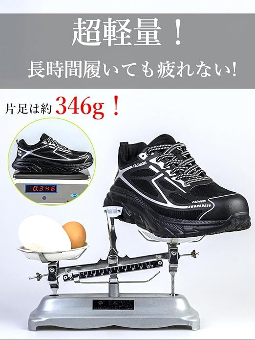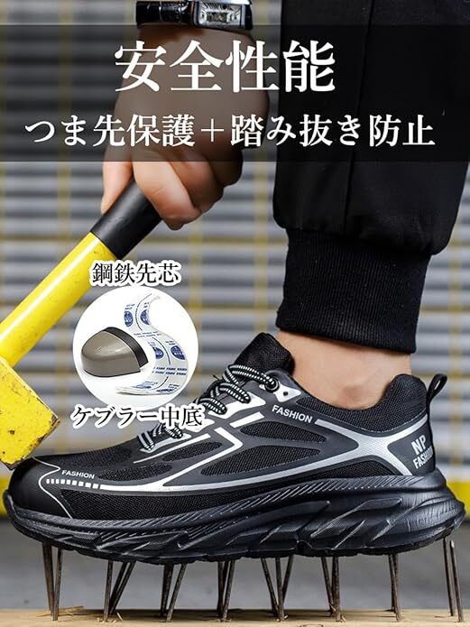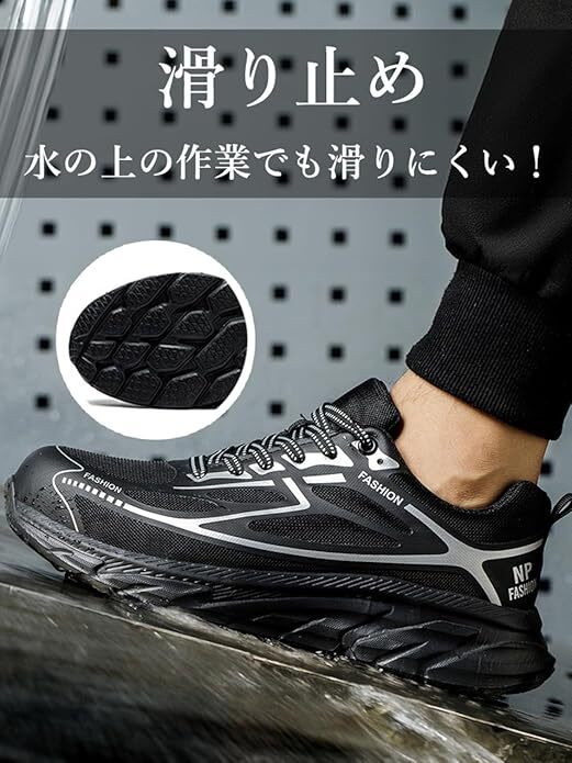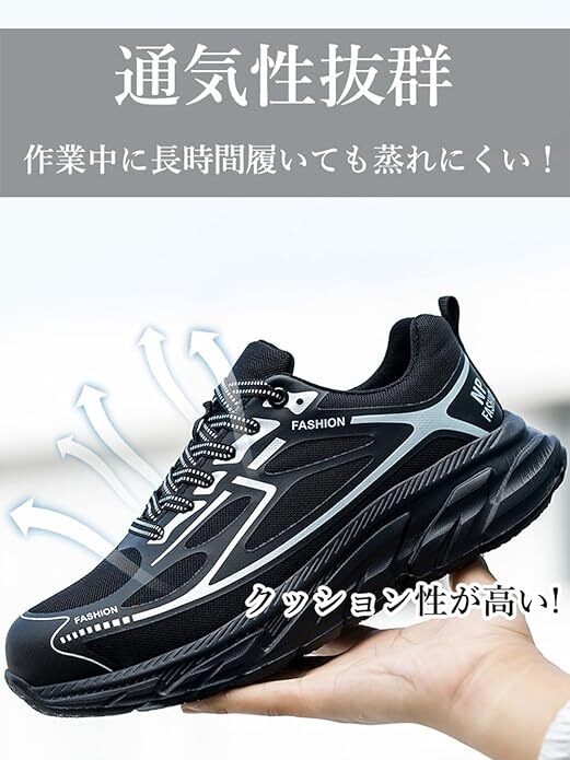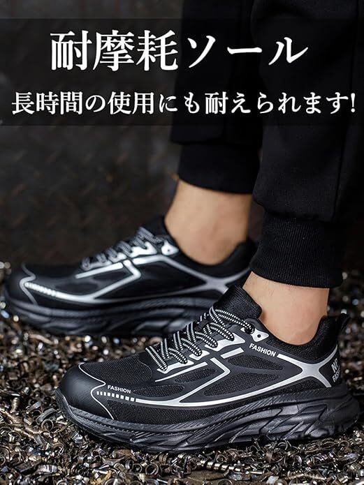 安全靴 超軽量 作業靴 釘踏み抜き防止 通気性 鋼先芯入り ローカット 耐摩耗 防滑 厚底 サイズ:26cm