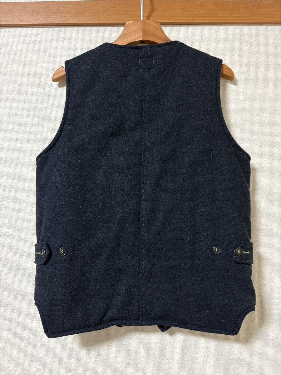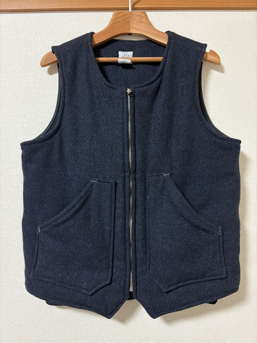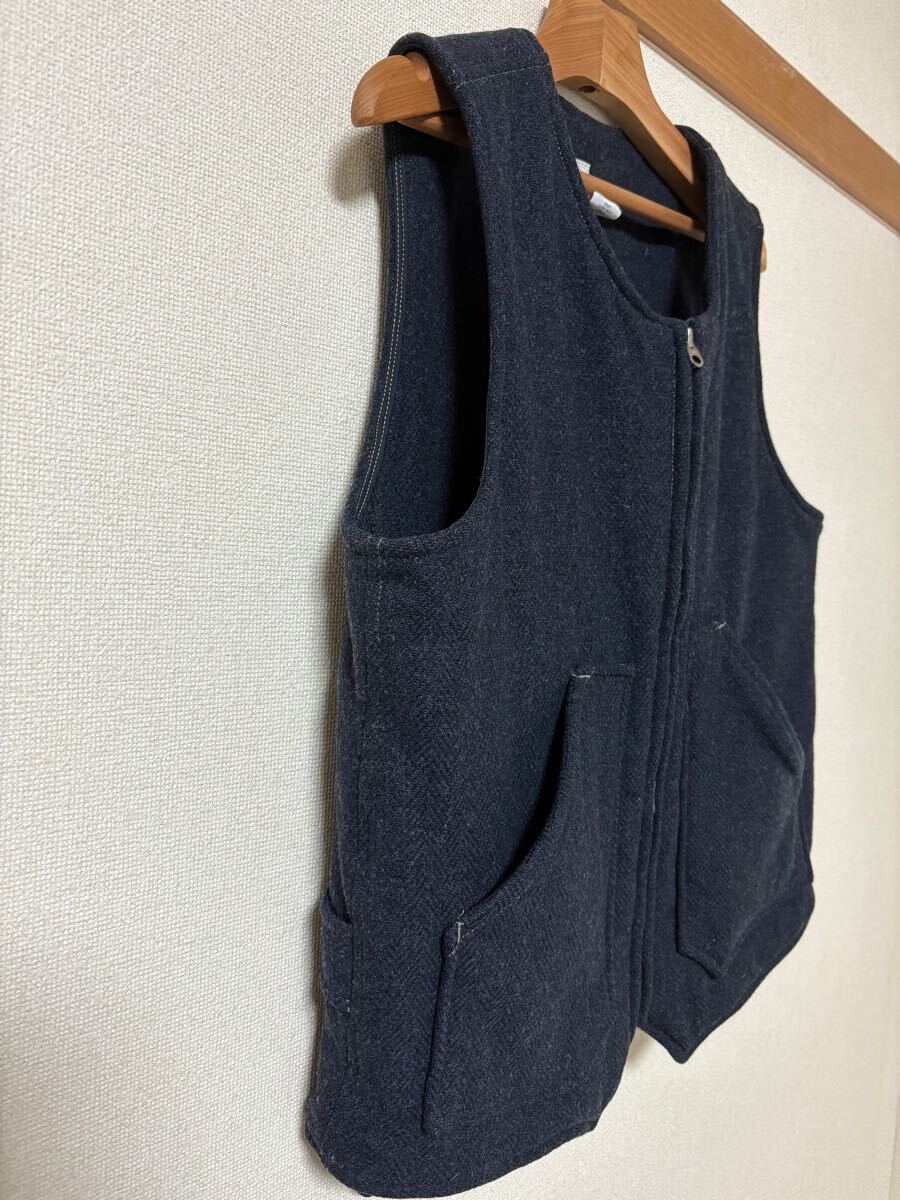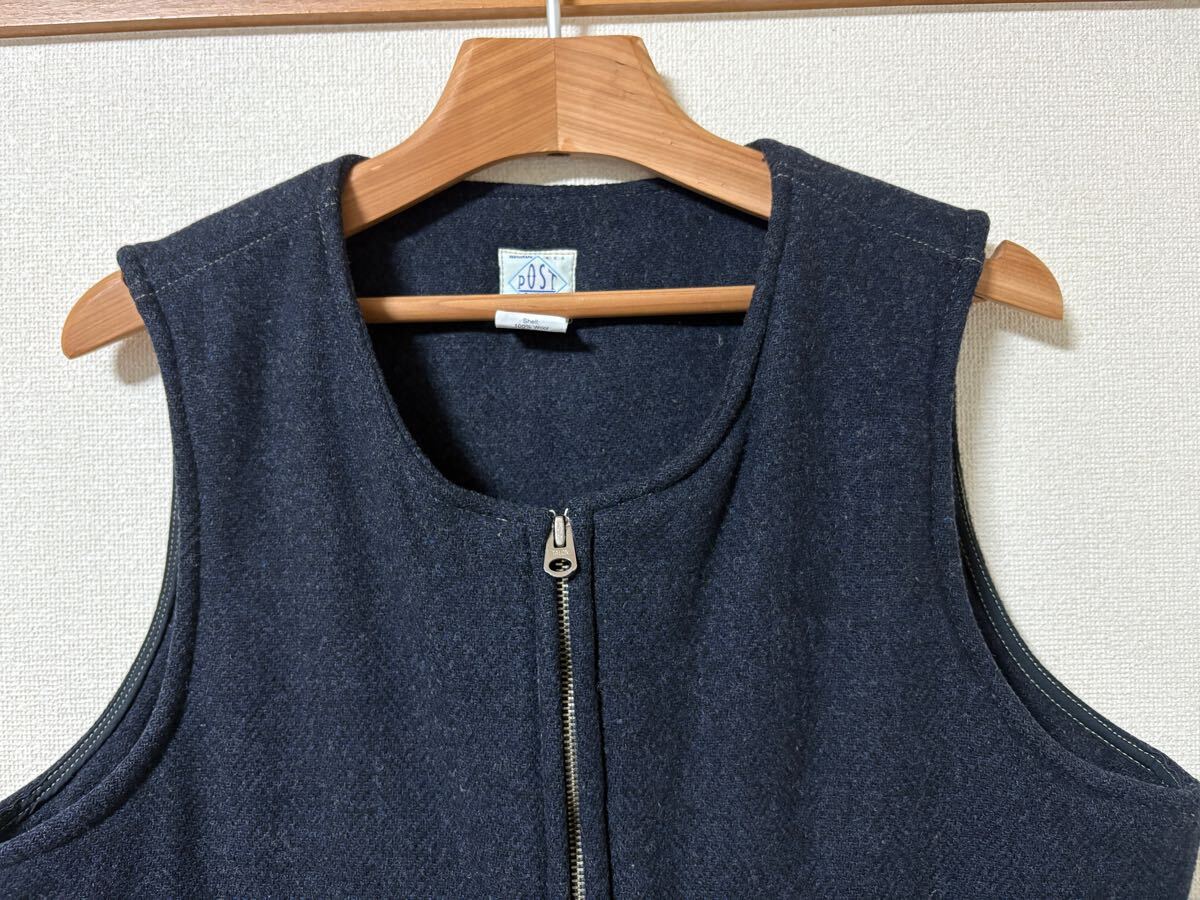 postoveralls ポストオーバーオールズ ウールベスト です。汚れやダメージの無い、美中古品です。サイズはSで、おおよその寸法が 肩幅36 身幅51.5 着丈60.5 といったところです。しっかりとした素材感のポストらしさが溢れるワーク系のウールベストです。中にポリエステルが入っていて温かいです。お好きな方、この機会にいかがでしょうか?よろしくお願いいたします。
