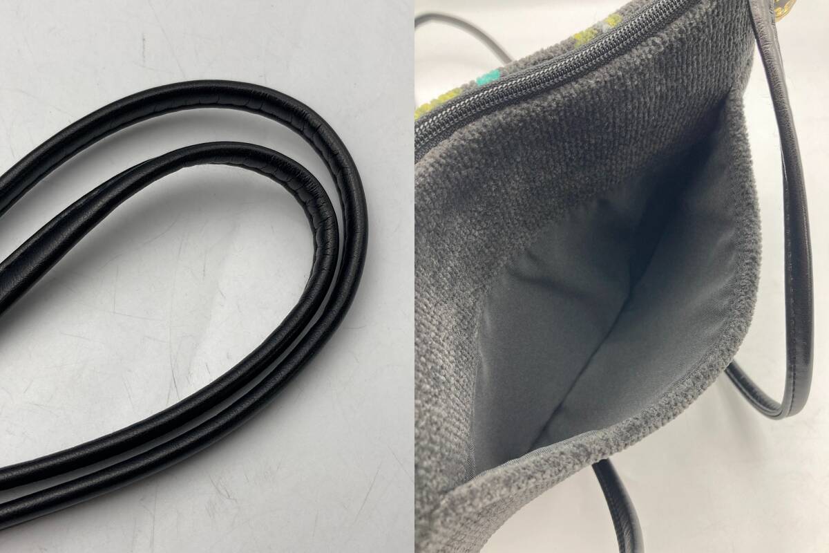 素材 | 表地:綿(シュニール織)、裏地:ポリエステル、ショルダー紐:合成皮革 | |