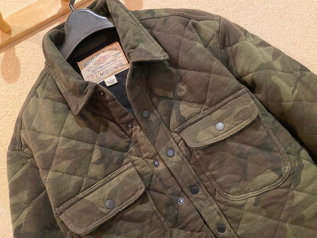 ANERICAN EAGLEキルティングダウンジャケットシャツ迷彩カモフラージュアウターインナーサバゲーアウトドアバイカーバイク乗りヴィンテージ