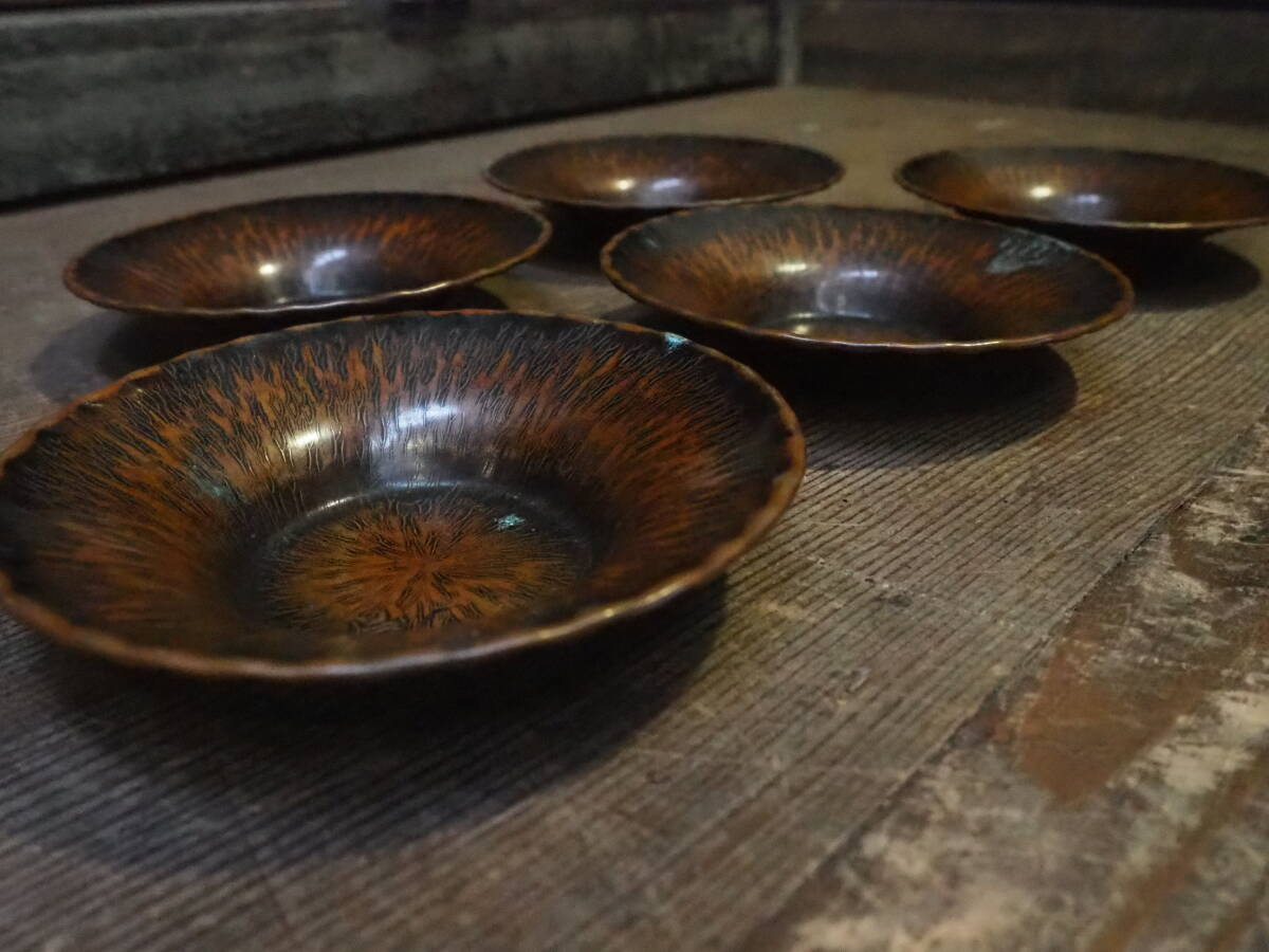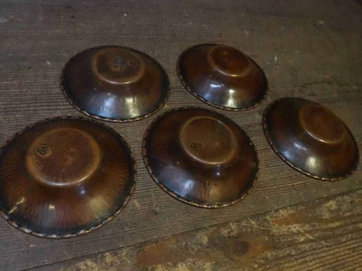 古道具の市で見つけた昭和レトロな銅製の茶托5枚組です。