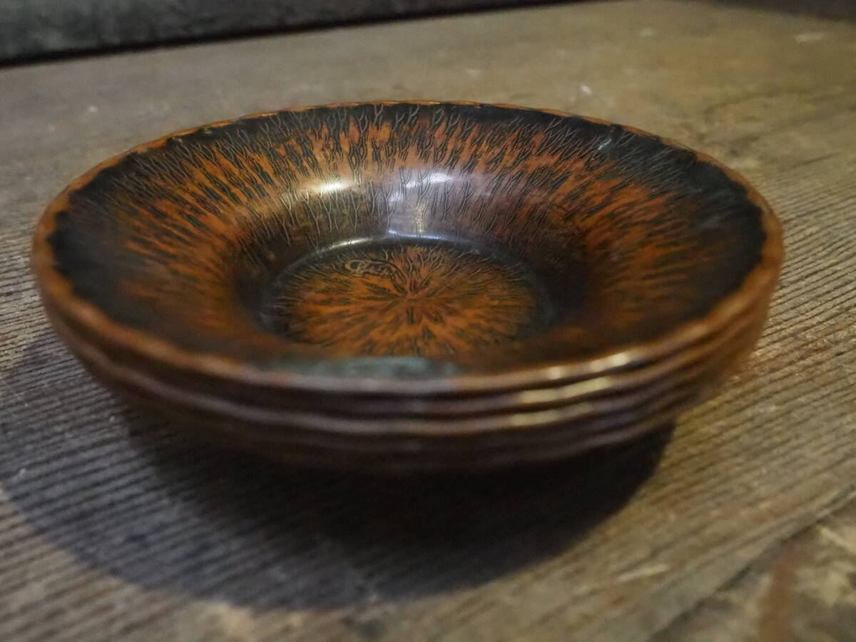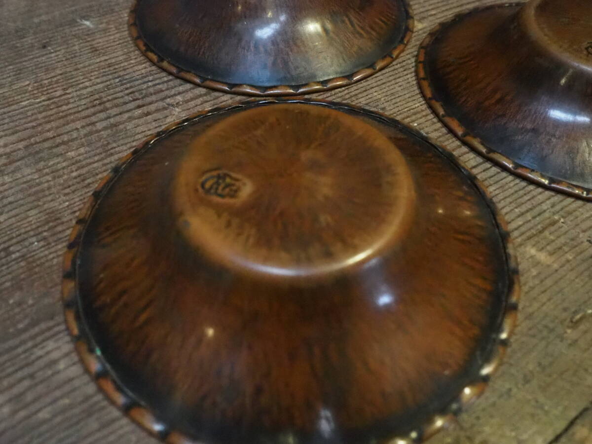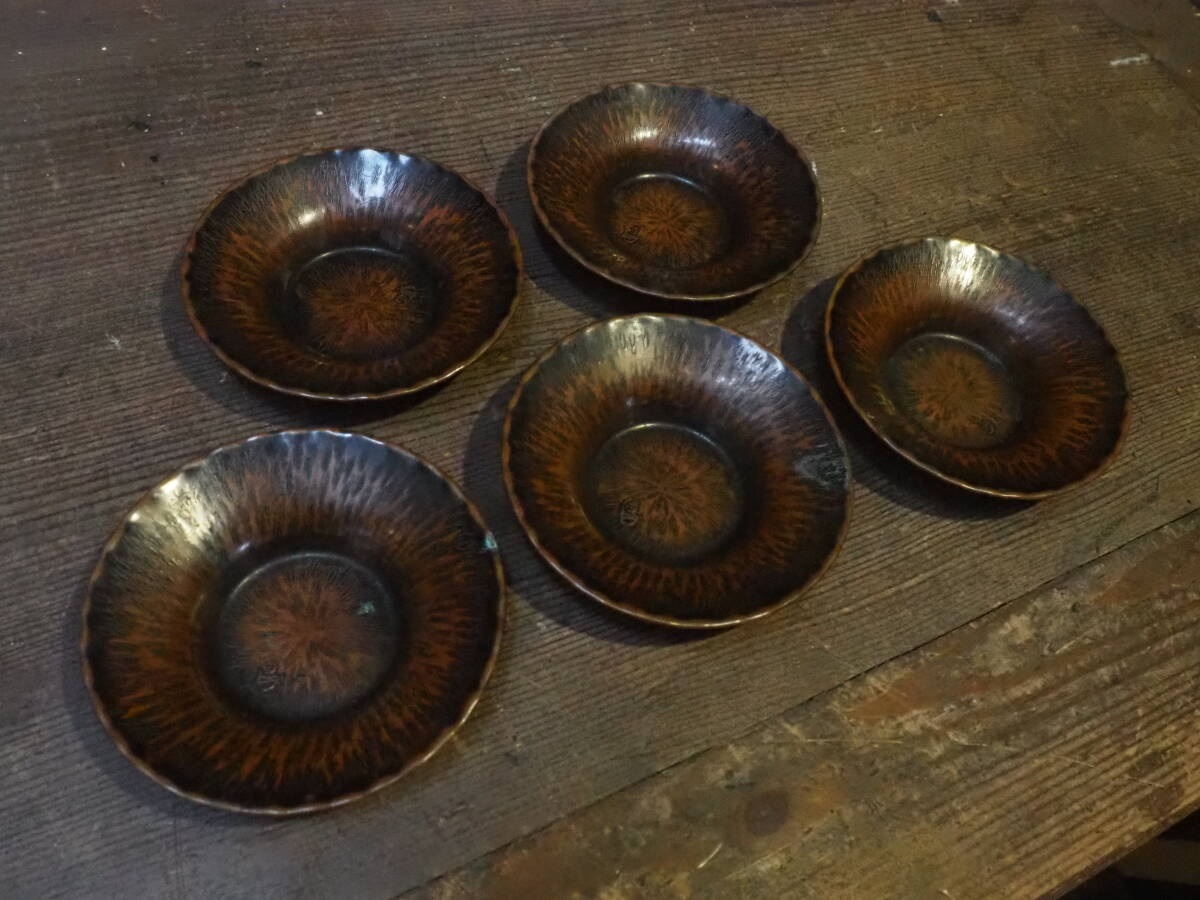 【銅製茶托5枚組】昭和レトロ茶道テーブル菓子器ろくろ無垢材古道具アンティーク骨董インテリア茶道インダストリア食器紅茶抹茶古民具