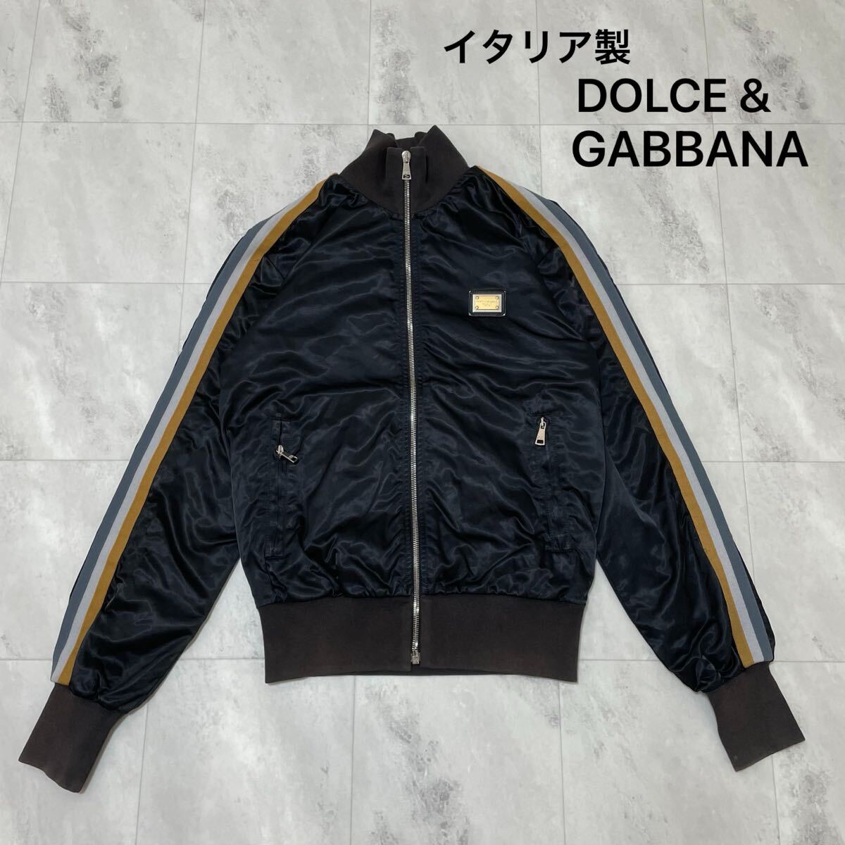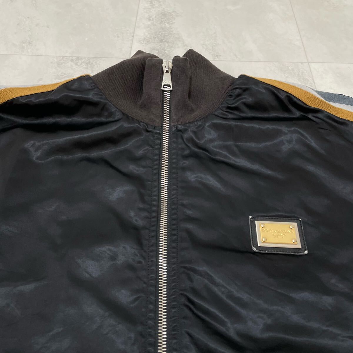 イタリア製 DOLCE&GABBANA ドルチェアンドガッバーナ トラックジャケット ロゴプレート ジップアップ ジャージ ブラック サイズ44 玉SS3170