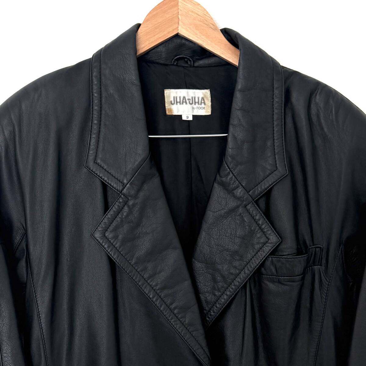 f2152ii JHAJHA by FOOK(ジャジャバイフック) サイズ9(S-M位) レザージャケット ボタン留め ブラック レディース ロングジャケット