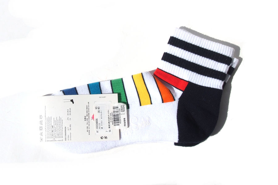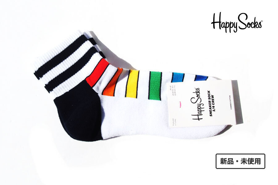 送料無料★新品|未使用|ハッピーソックス|happy socks|クルー丈スニーカーソックス|Multi Stripe1/4 Crew Sock