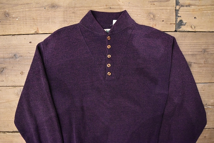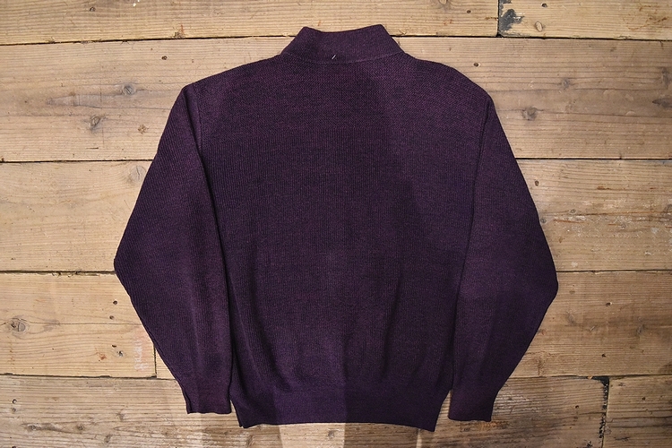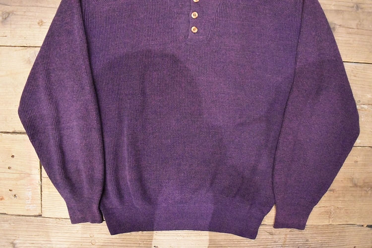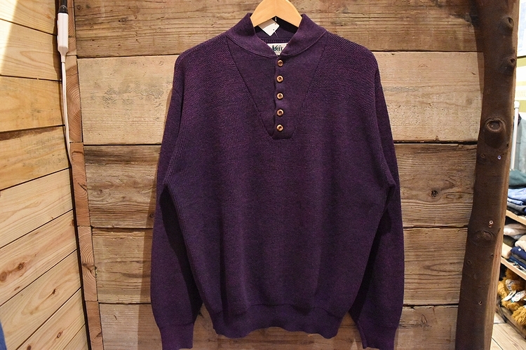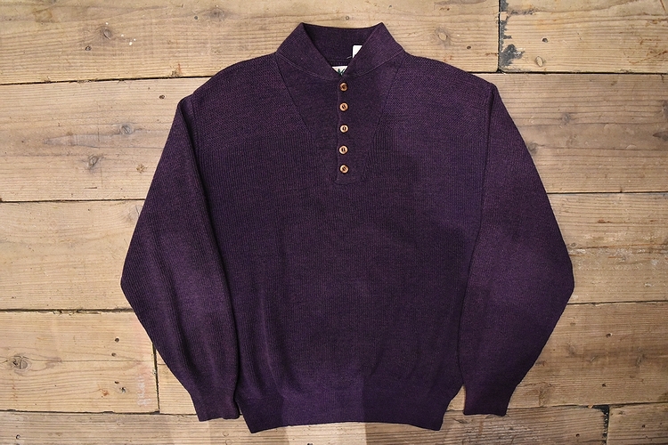 グッドカラーアイテム◎90sビンテージREIアールイーアイ ヘンリーネックコットンニットセーターLパープル紫系アメカジアウトドアt433