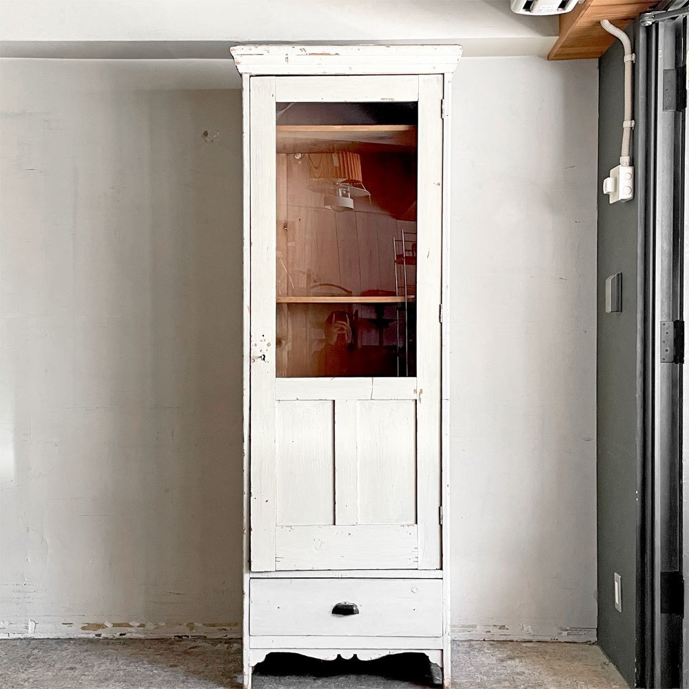 | 商品名 | ヨーロッパビンテージ European Vintage ガラスキャビネット ディスプレイケース ホワイト ペインテッド シャビーシック 1ドロワー 店舗什器 |