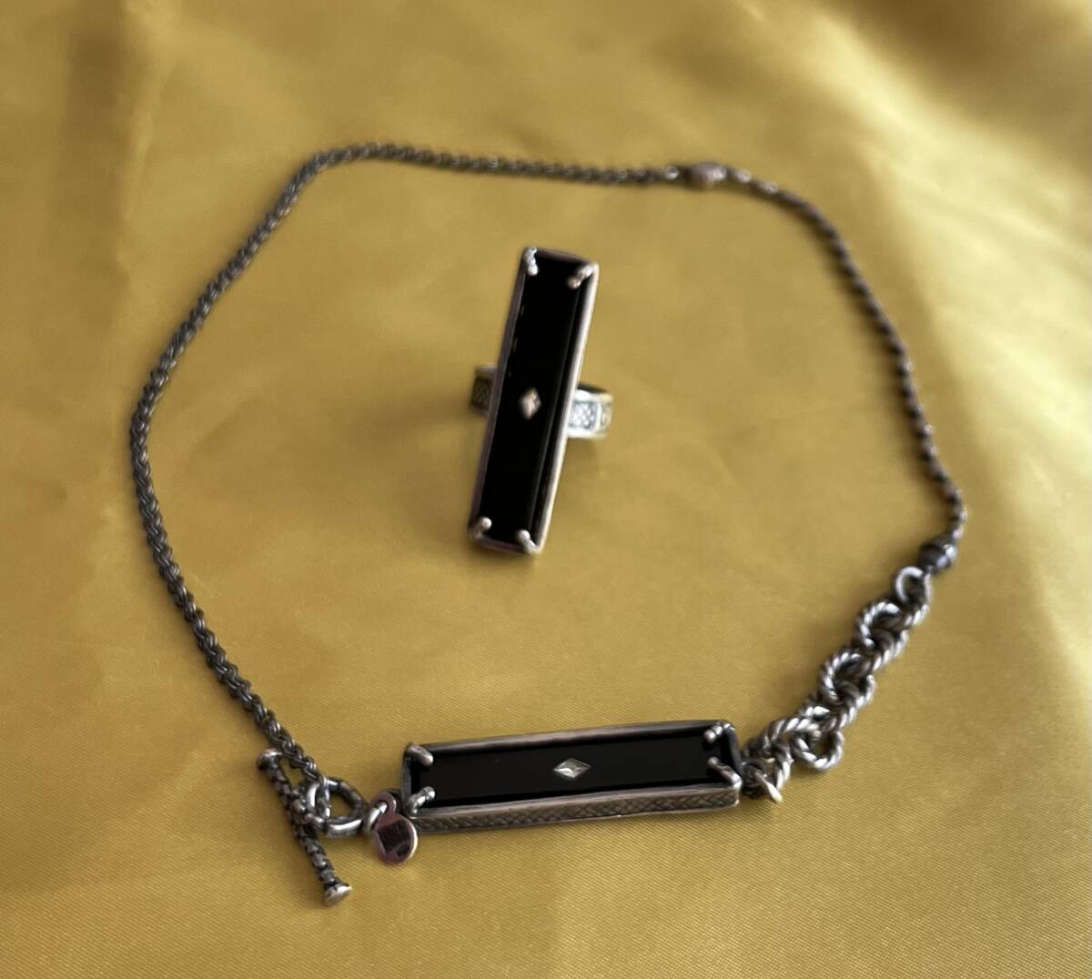 ジェムキングダム GEM KINGDOM シルバー×ブラックオニキス ネックレス 長方形 40cm