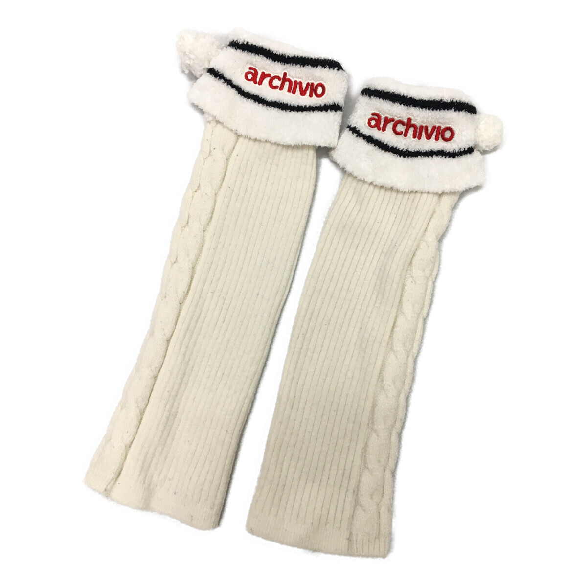 coco 中古【値下げ】 アルチビオ レディース レッグウォーマー 白 ボンボン付き 履き口ボア レターパックプラス発送可 100073