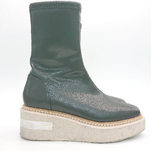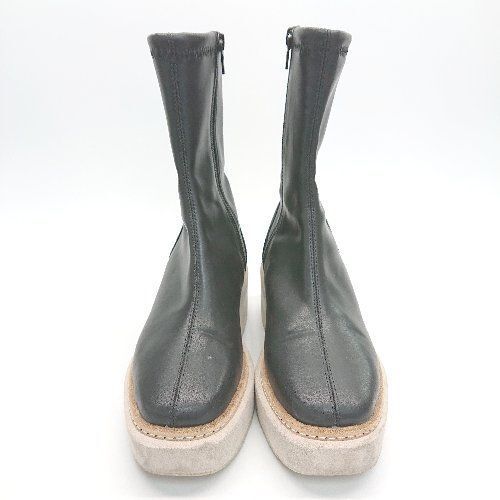 ■ Lucida ラバーウエッジソール ミディアム ストレッチ プラットフォーム 厚底ブーツ サイズ35 ブラック レディース E