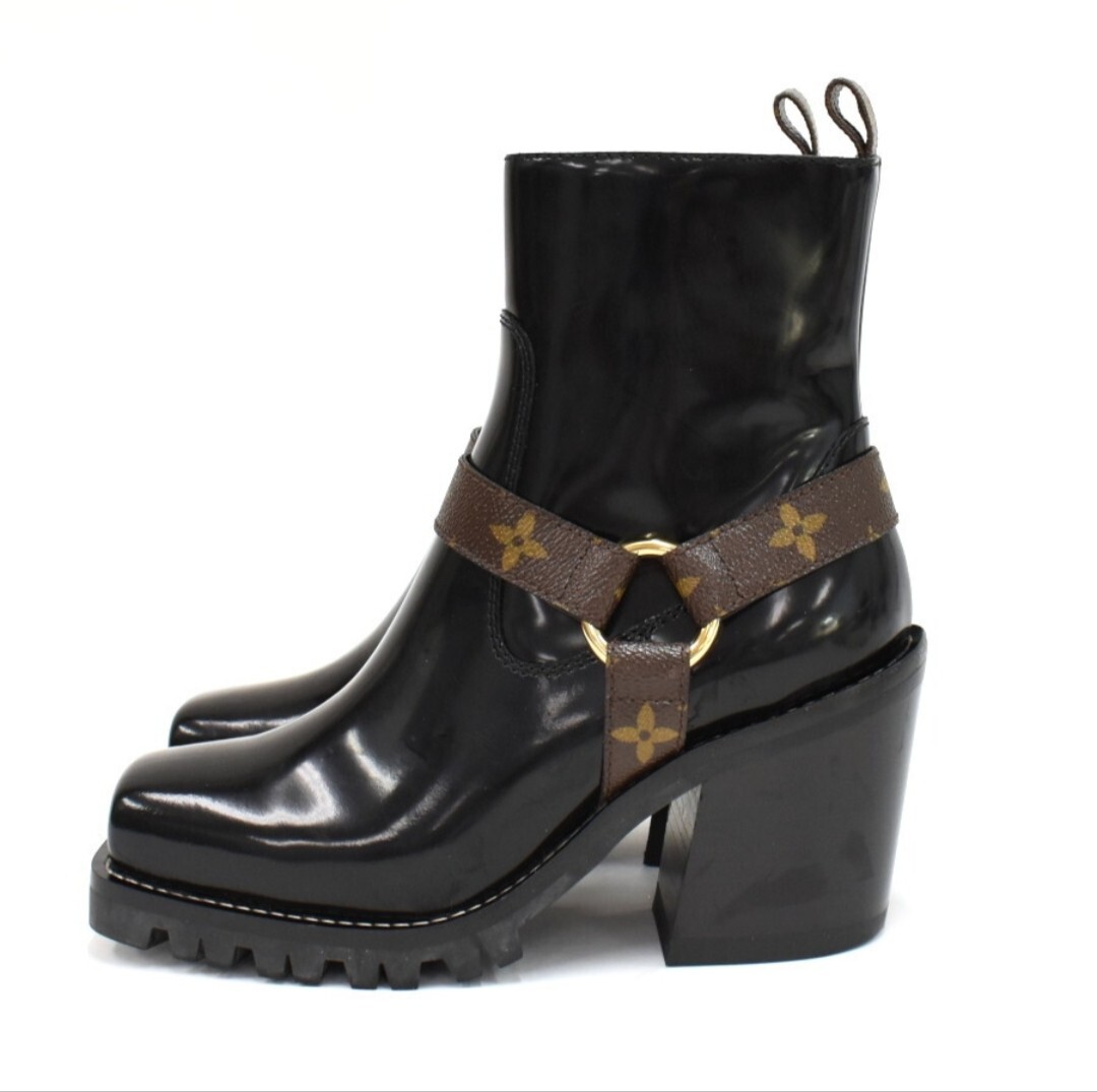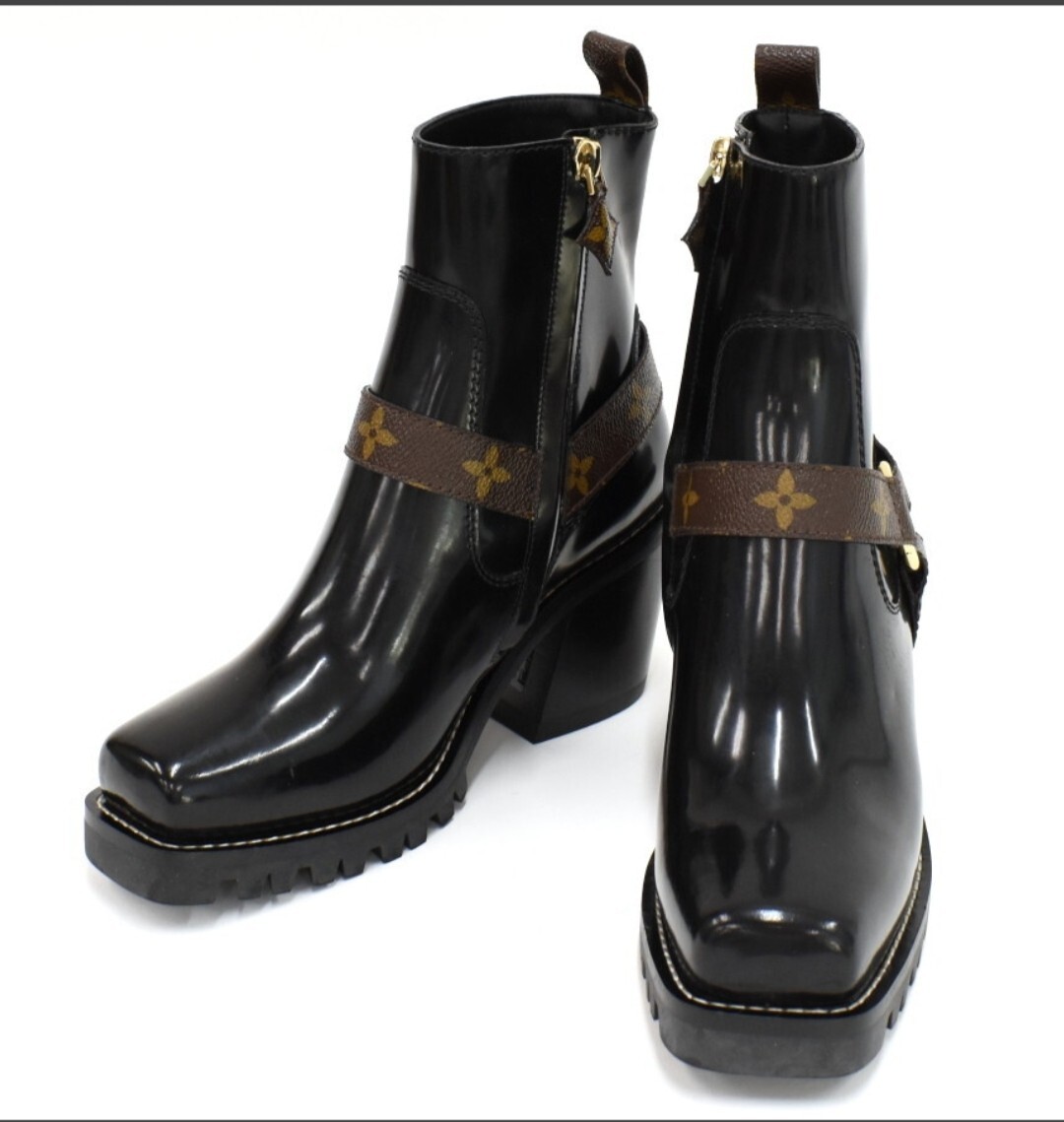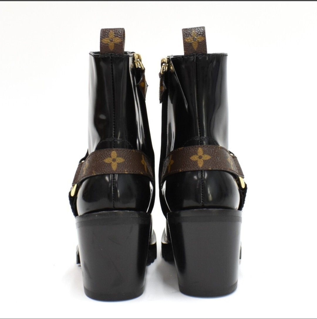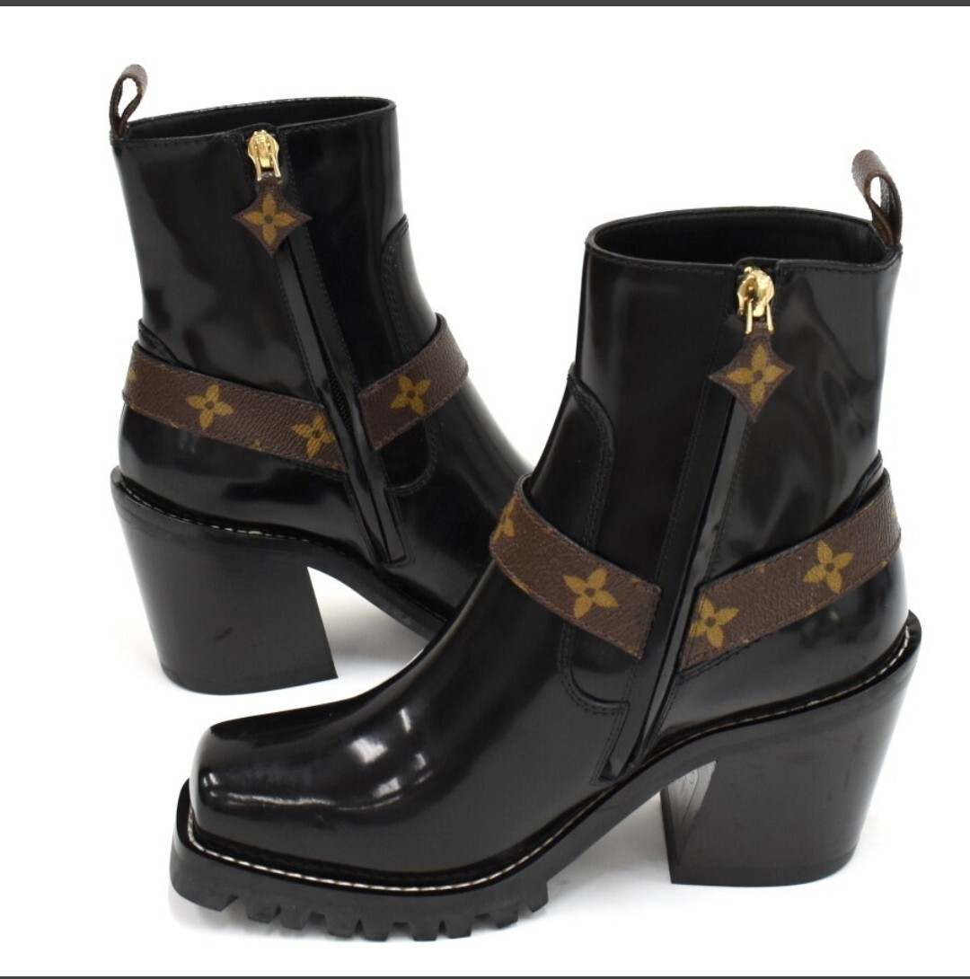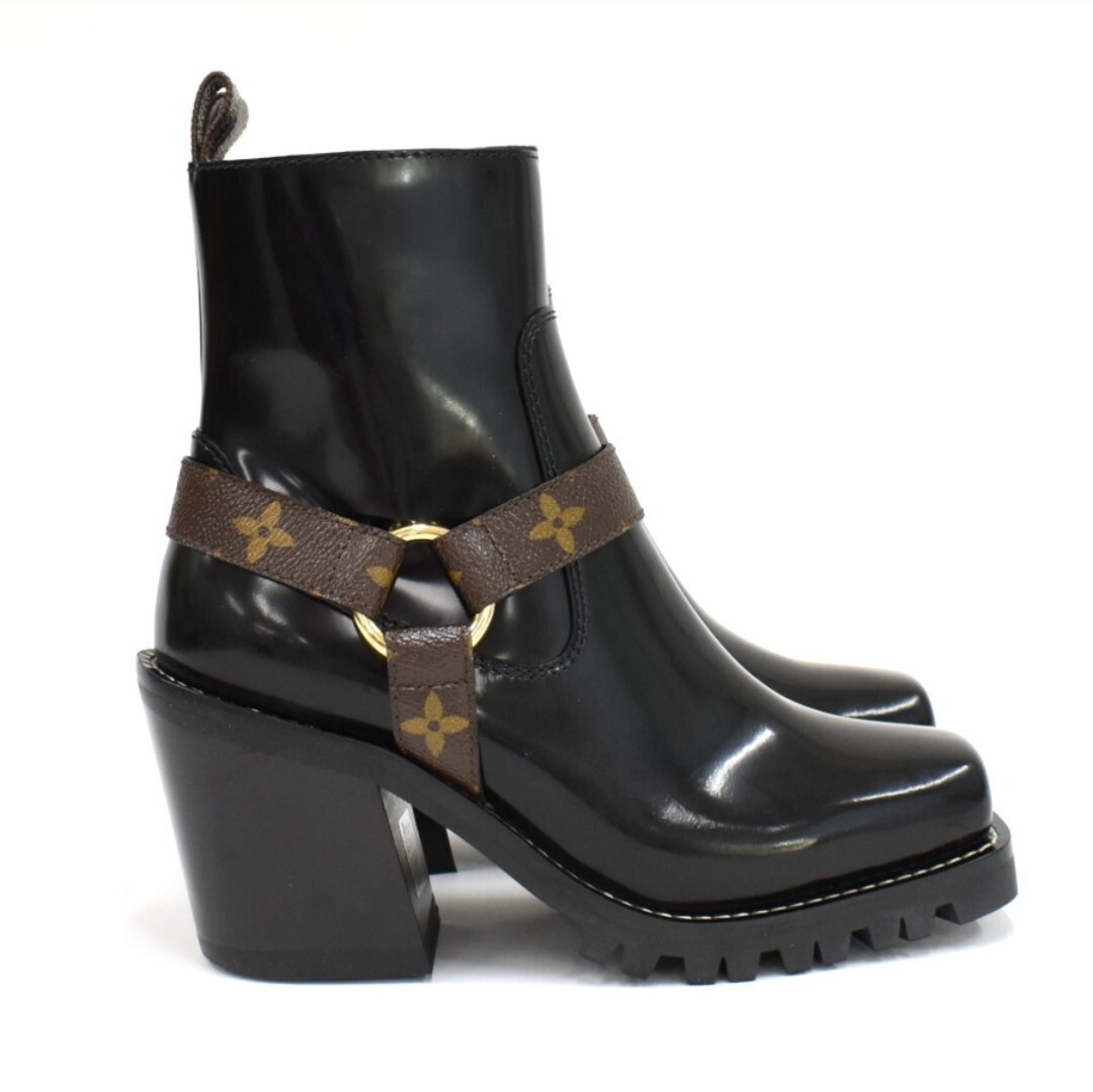 未使用/LOUIS VUITTON/ルイヴィトン/リミットレスライン/アンクルブーツ/37/パテントレザー/モノグラム/ブラック