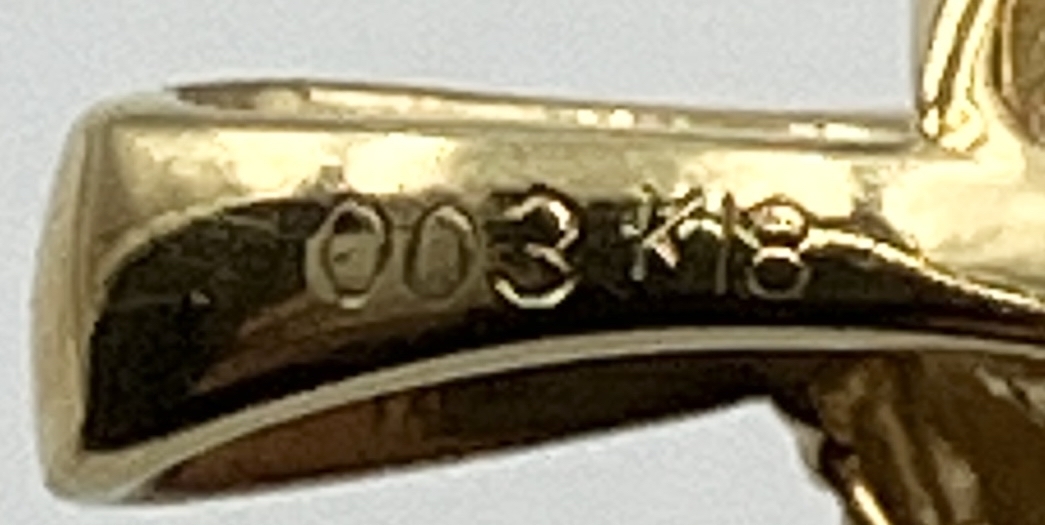 | 素材:K18 品名:トップ トップサイズ:約縦33mm、横18mm(バチカン含む) バチカン内径:約縦7mm、横4mm 総重量:約12.9g 付属品:鑑別書 ※画像のものが全てです。 ※サイズはスタッフが手作業で計測しており、誤差が生じる事がございます。予めご了承下さい。 ※当店のほとんどの商品は中古のお品物でございます。その為、中古品の時点で小傷はある物とご理解の上お買い求め下さい。 | ||||||