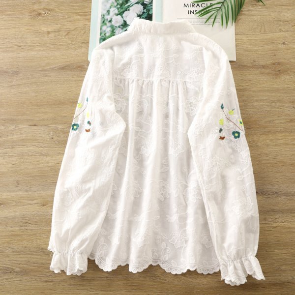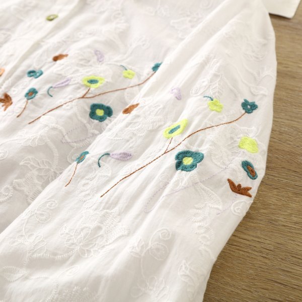 sg ワイシャツ トップス チュニック 大人可愛 フリーサイズ ナチュラル 刺花柄 綿100% 白色1