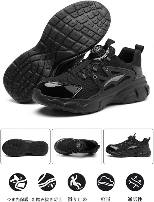 安全靴 ダイヤル式 メンズ ワークシューズ 軽量 通気性 ローカット 厚底 鋼先芯入り 耐摩耗サイズ:25.5cm