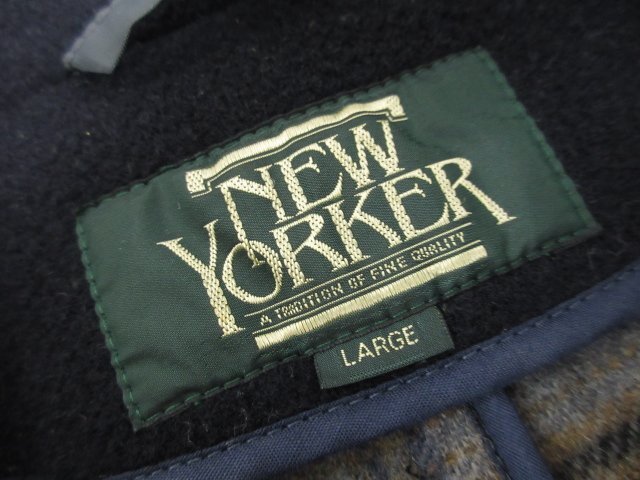 【ニューヨーカー NEWYORKER】 内側チェック柄 肉厚生地 ウールコート (メンズ) sizeL 濃いめのネイビー系 ◯17MW3742◯