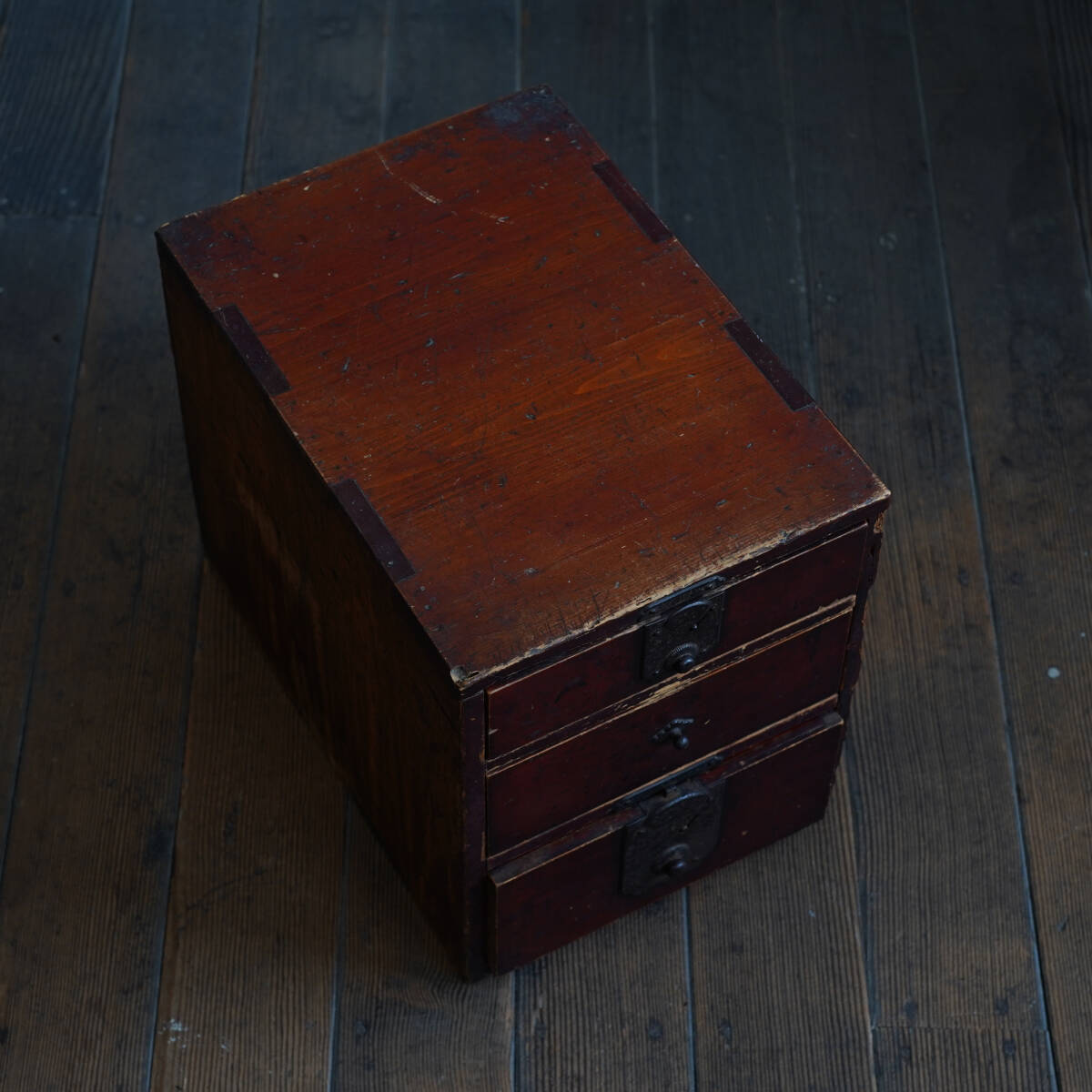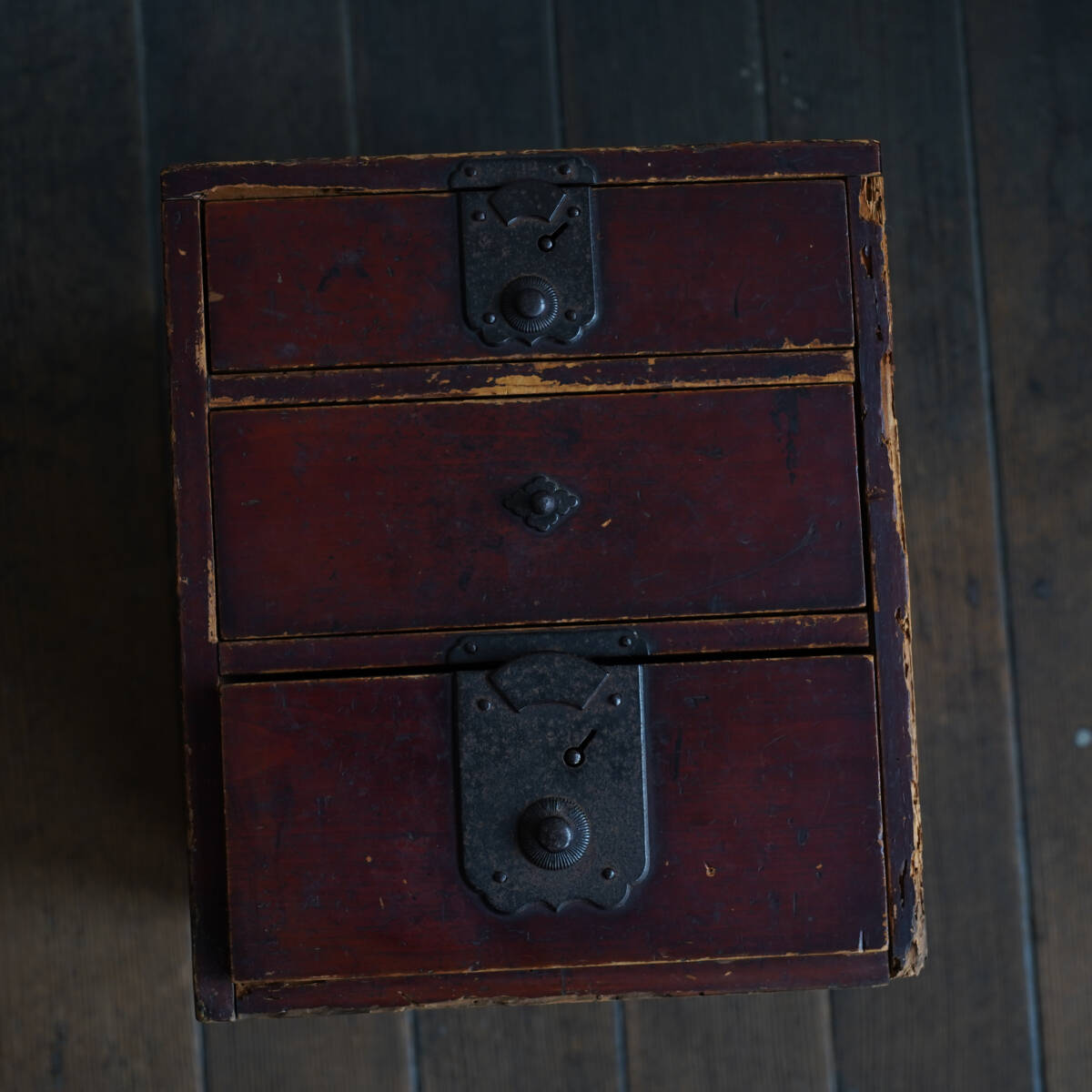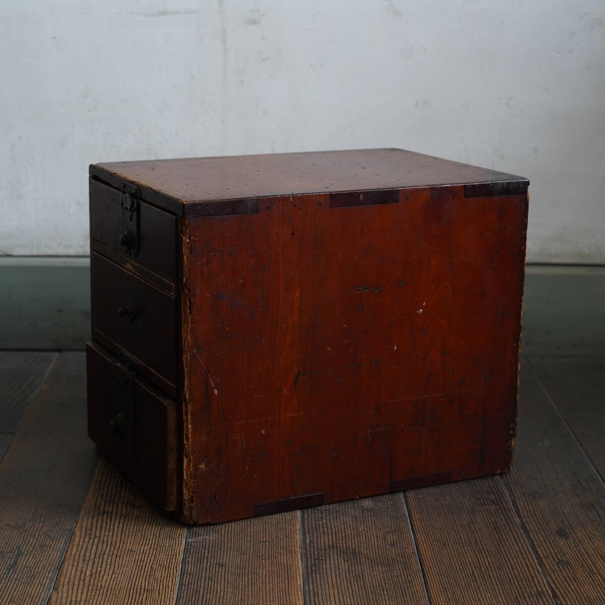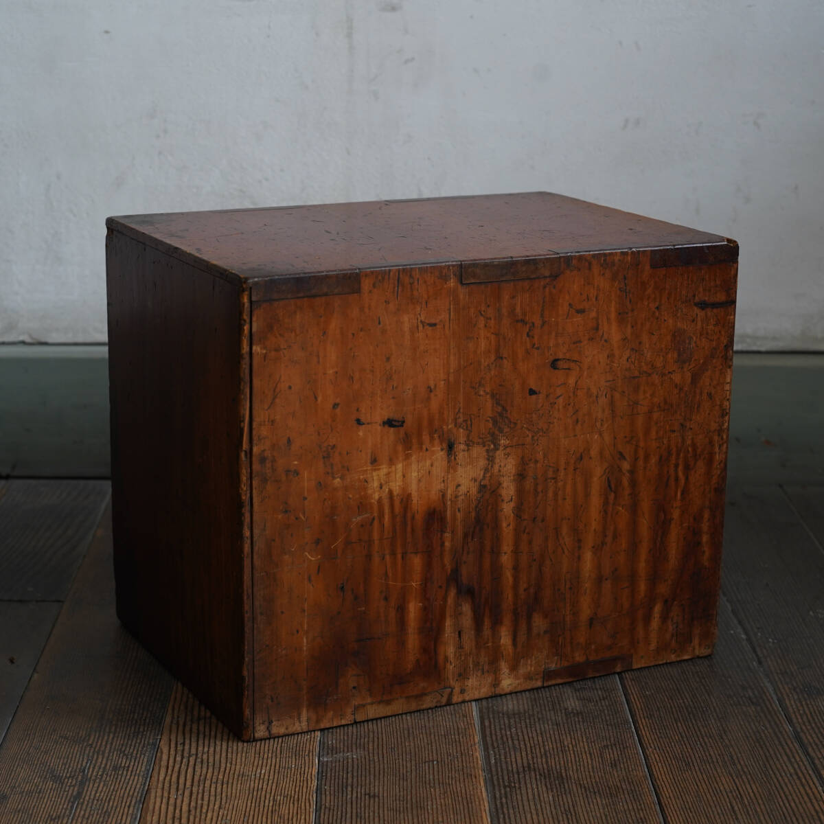 画像のように時代なりの経年感ございますが、小抽斗の顔である面(おもて)や鉄金具の味わいも好ましく大変雰囲気の良いお品です。