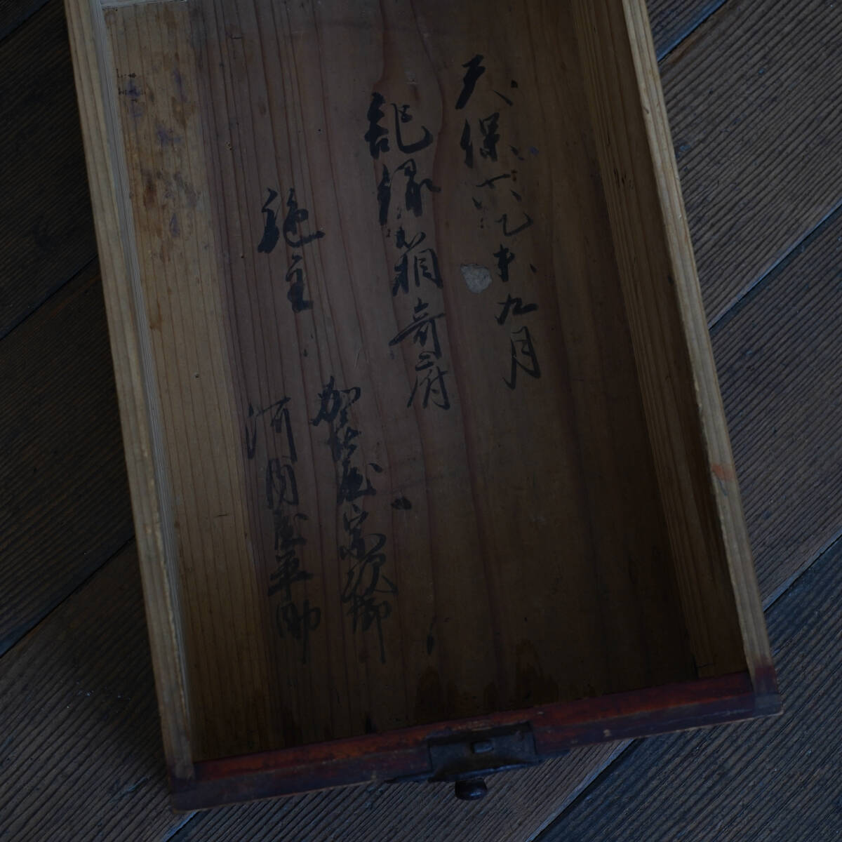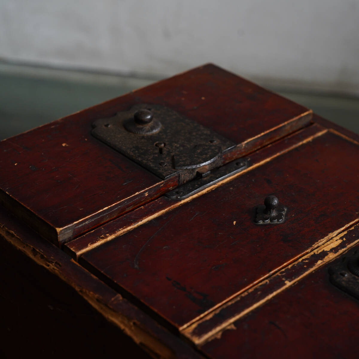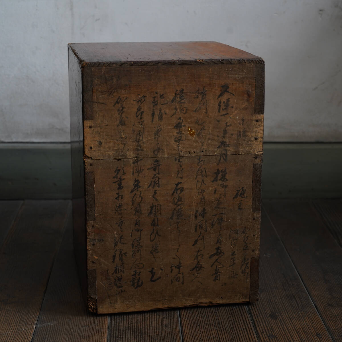 時代小抽斗 江戸後期 天保六年 (1835年) / 木製 漆塗り 小箪笥 小引き出し 帳場小箱 船箪笥 鉄金具 和箪笥 タンス 古民具 古道具