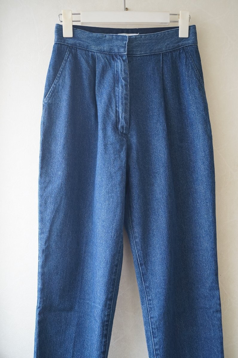 ウエストにタックを寄せたテーパードシルエットのデニムパンツです。