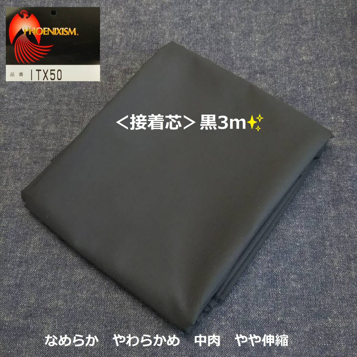1057<接着芯>黒3m◆92cm巾◆ITX50◆なめらか&やわらかめ&中肉&やや伸縮◆ハンドメイドに♪