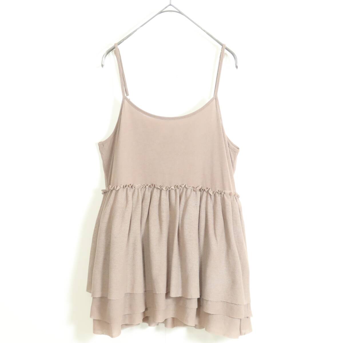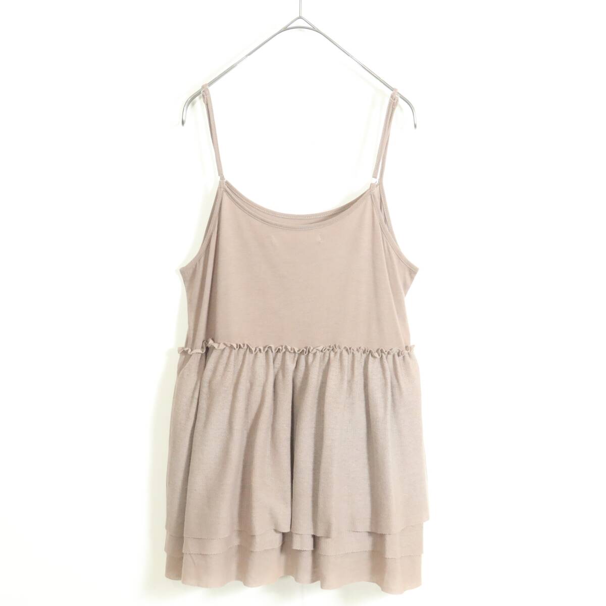 商品説明 | 【実寸約】バスト82着丈50(cm)【サイズ表記】 表記なし(実寸をご参照ください)【素材】綿100%【状態】使用感少なめの美品【デザイン】ブラウン色系ティアードデザインのキャミソールです。ドッキングデザインと小さなフリルが可愛いアイテムです。肩紐の長さが調節可能なデザインです。 |