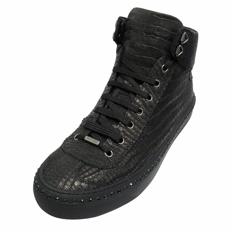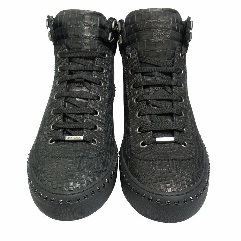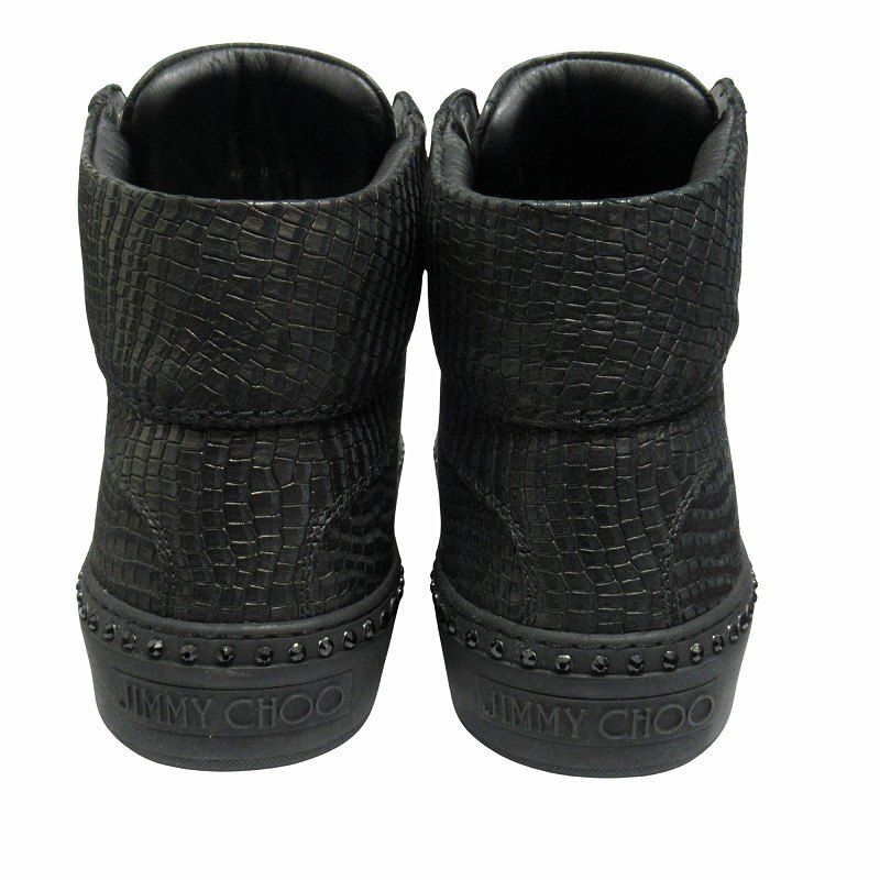 未使用品 ジミーチュウ JIMMY CHOO アーガイル "ARGYLE" クロコ型押し ヌバック レザー スニーカー クリスタル ハイカットシューズ■3