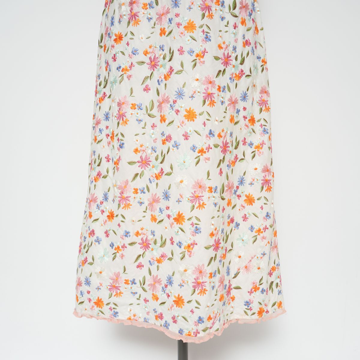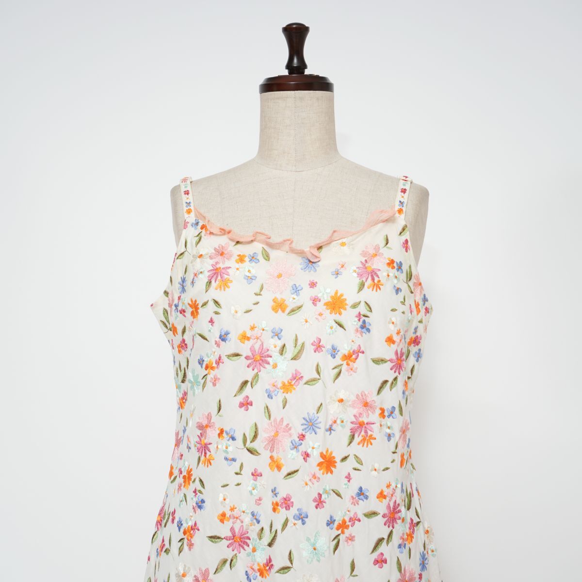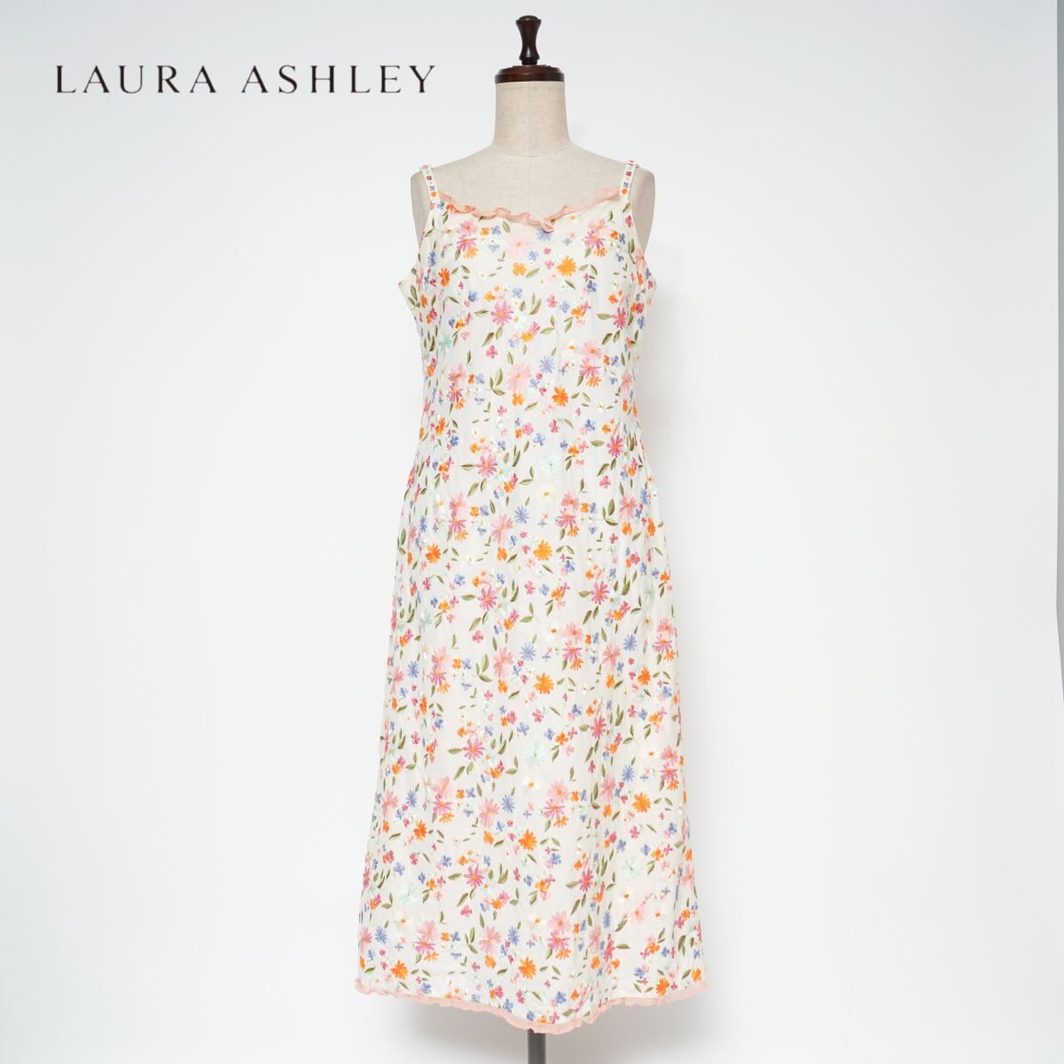 美品 LAURAASHLEY ローラアシュレイ 総刺繍花柄ワンピース キャミソール 膝丈 レディース 白 ホワイト サイズ11*ZC428
