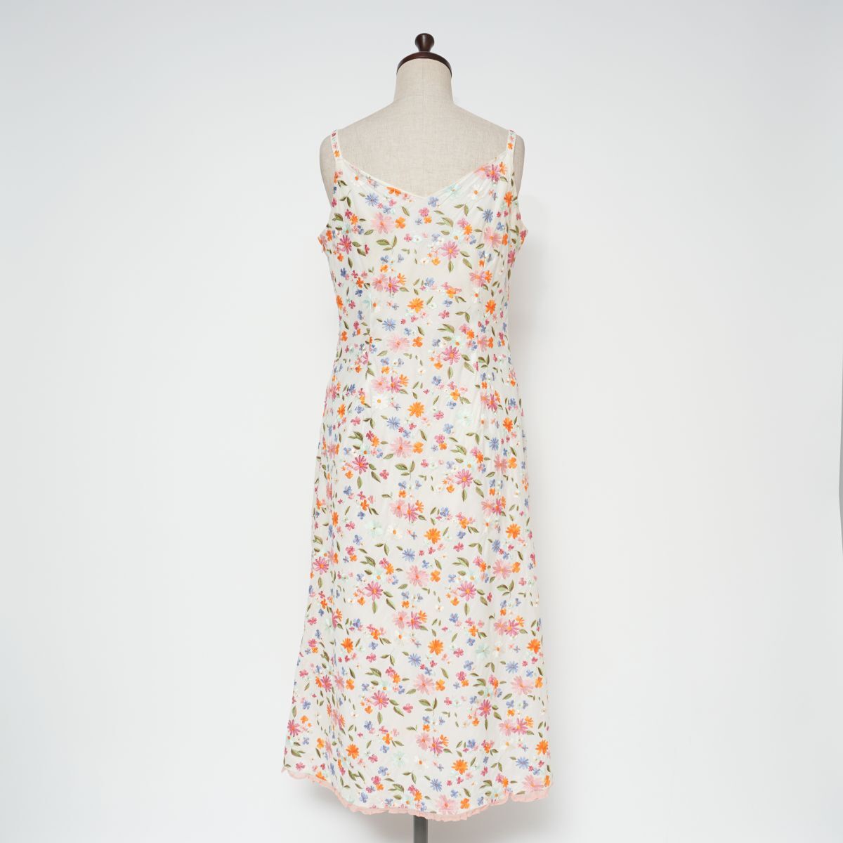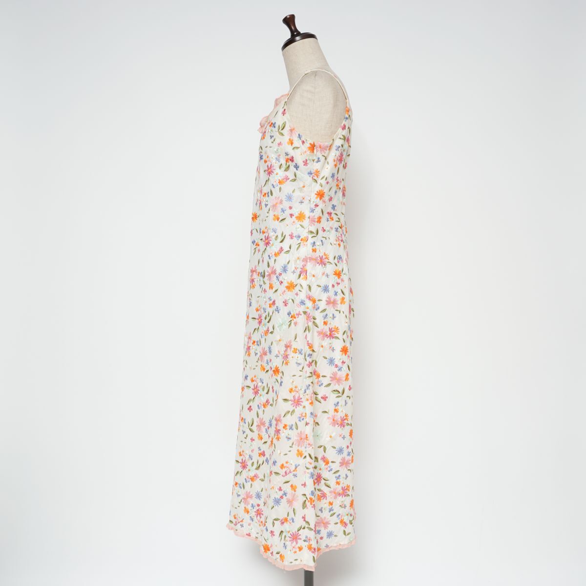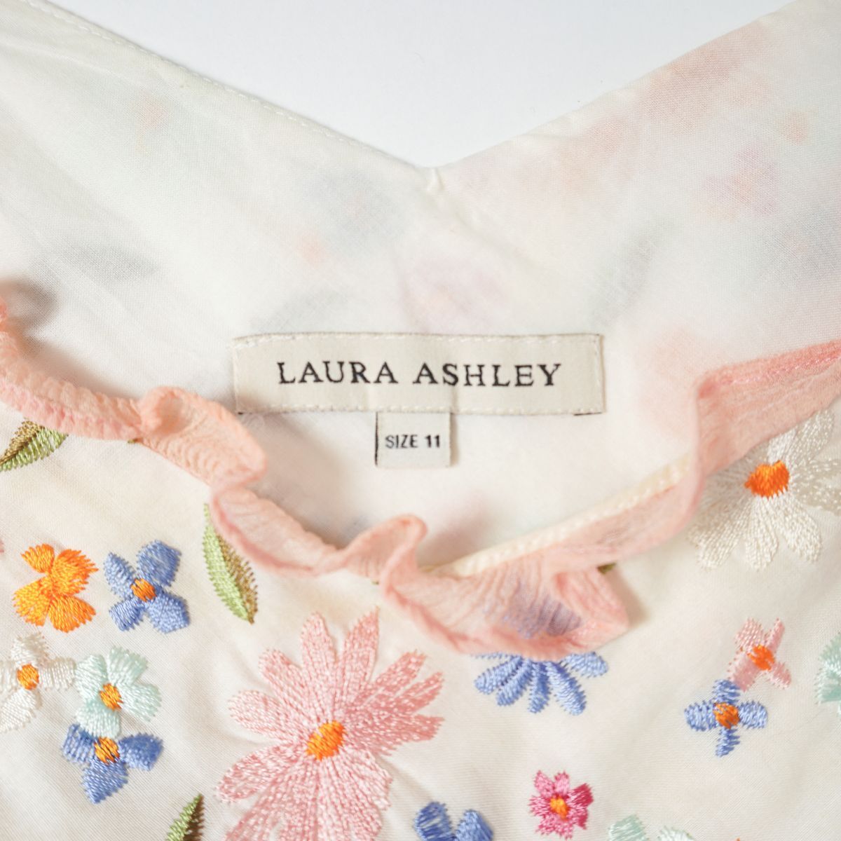 美品 LAURAASHLEY ローラアシュレイ 総刺繍花柄ワンピース キャミソール 膝丈 レディース 白 ホワイト サイズ11*ZC428