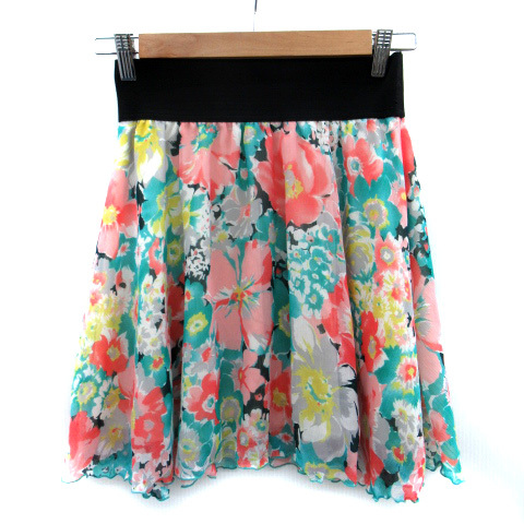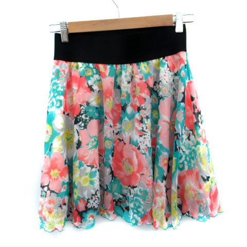 ジャイロホワイト JAYRO white フレアスカート ミニ丈 花柄 M マルチカラー サーモンピンク 緑 グリーン /SM10 レディース