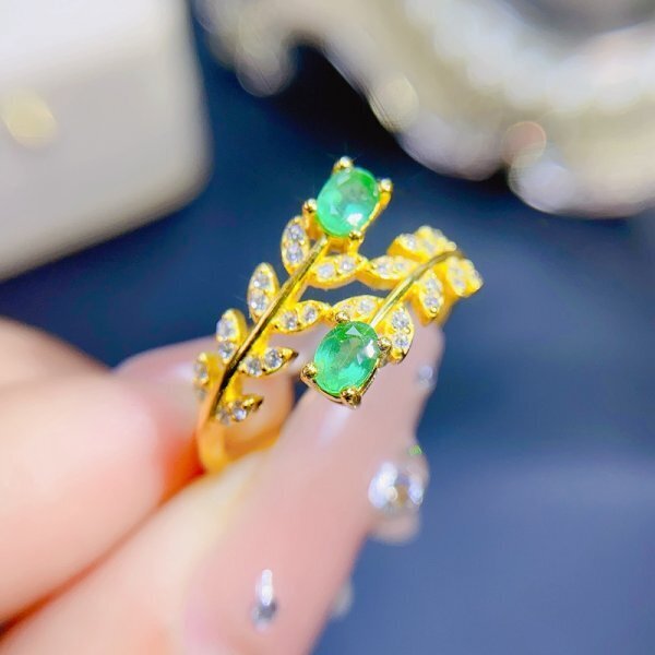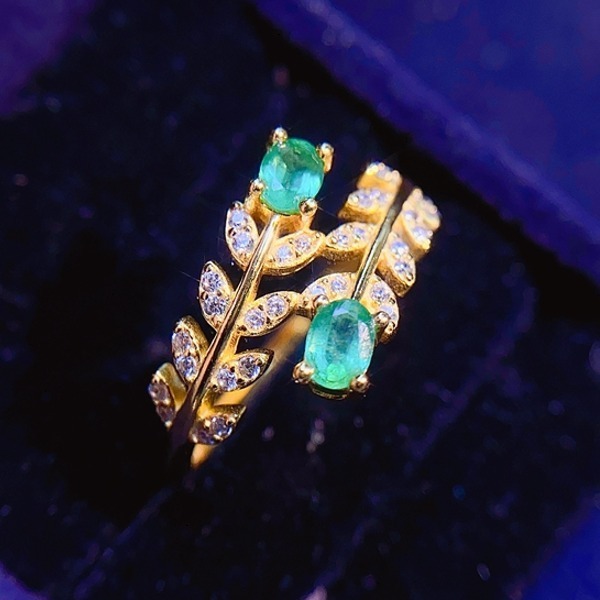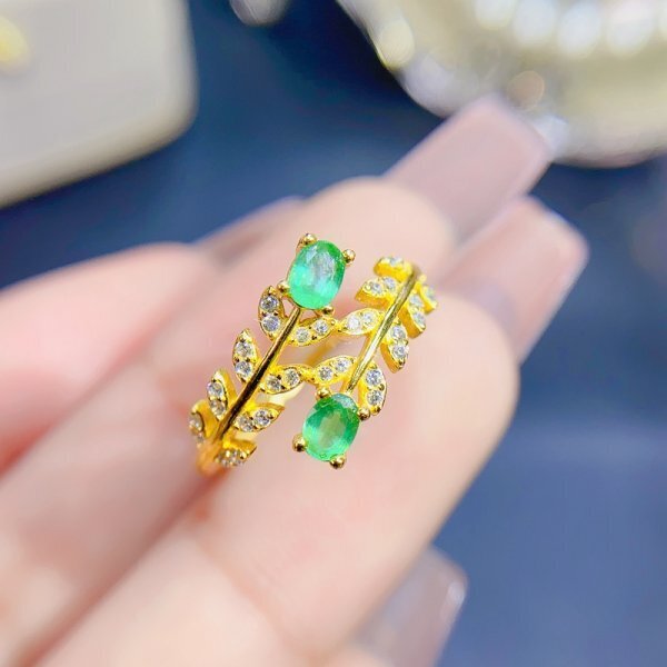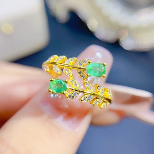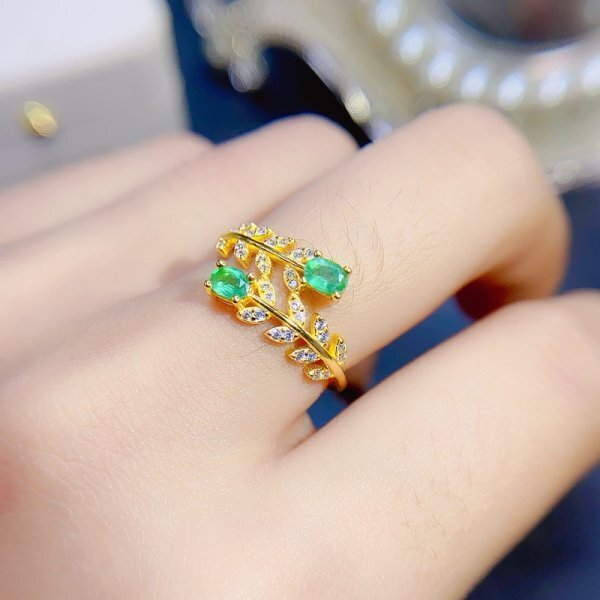 天然エメラルドリング、3×4mm ,2個、925スターリングシルバー、貴重なジェムストーン