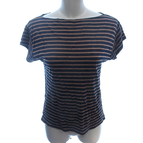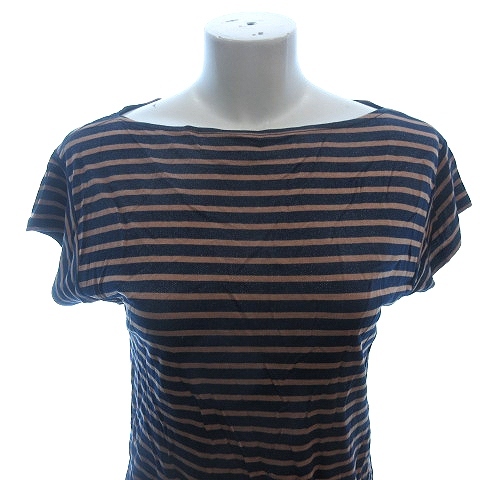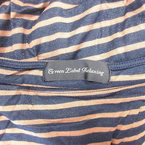 グリーンレーベルリラクシング ユナイテッドアローズ green label relaxing カットソー サブリナネック ボーダー フレンチスリーブ 紺 ネイビー /AU レディース